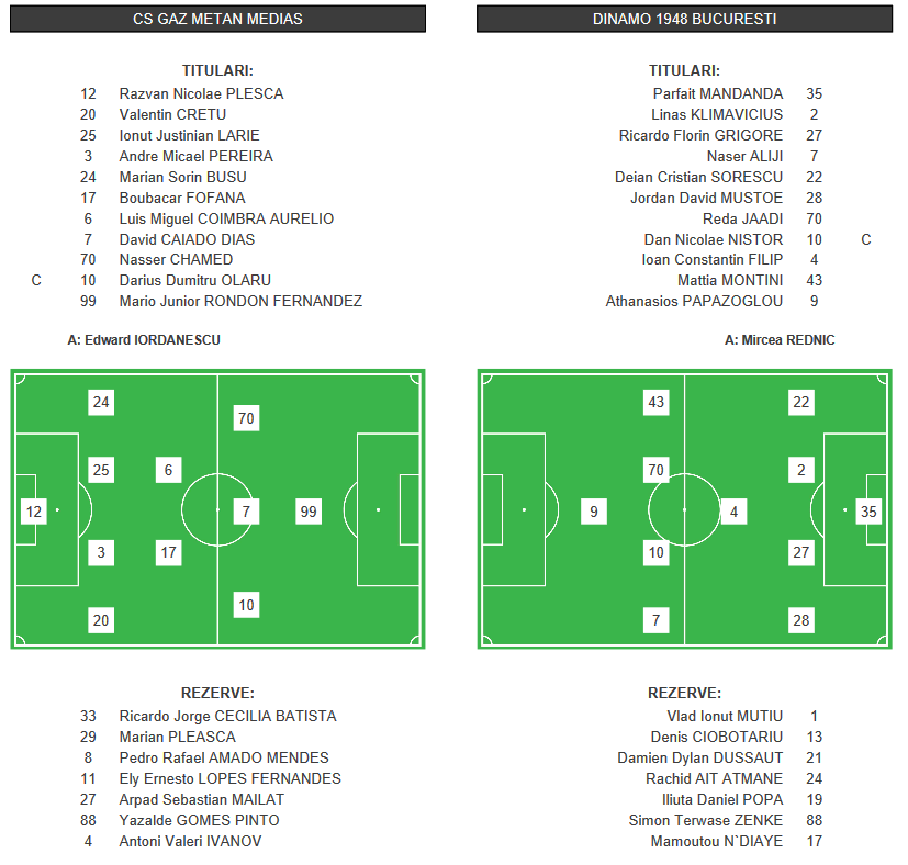 Dinamo: Mandanda - Sorescu, Klimavicius, Ciobotariu, Aliji - I. Filip, Ait-Atmane - Montini, Nistor, Jaadi - Papazoglou