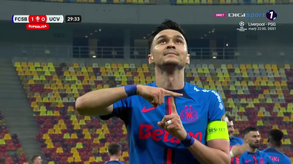 Adrian Șut, gol splendid în FCSB - Univ. Craiova