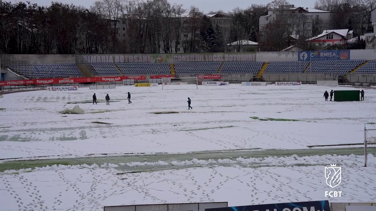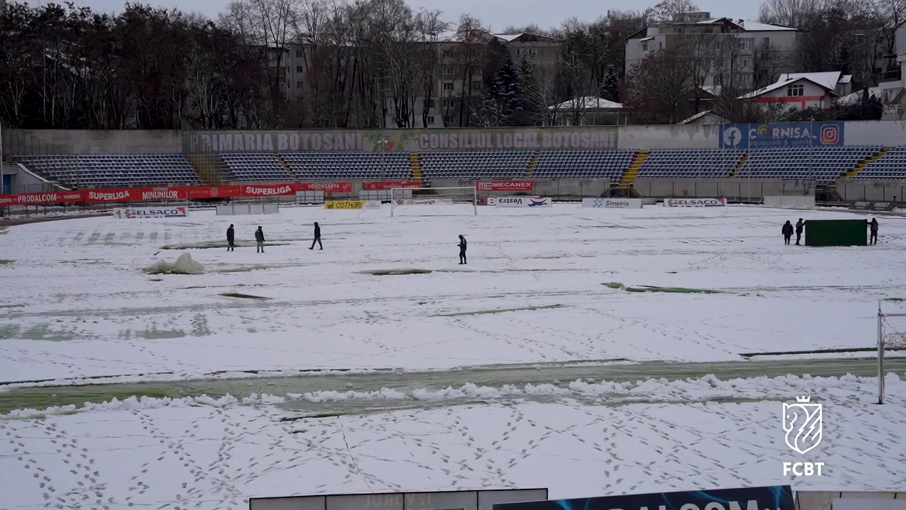 Meciul restant dintre FC Botoșani și FCSB din etapa a 4-a a SuperLigii promite să fie o confruntare intensă, dar organizatorii se confruntă cu o provocare neașteptată: zăpada abundentă care s-a așternut peste județul Botoșani.