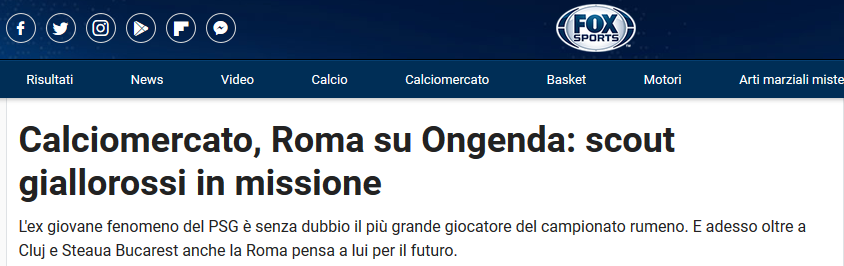 Jurnalistii italieni scriu ca Ongenda "este cu siguranta cel mai bun fotbalist din Liga I", iar experienta de la PSG, in perioada junioratului, este o garantie pentru viitorul atacantului de 23 de ani.