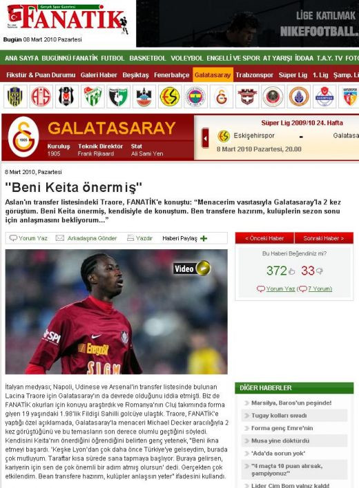 "E noul Drogba", au fost cuvintele care l-au convins pe Haldun Üstünel, directorul sportiv Galatei, sa-l urmareasca la Lacina Traore si sa discute acest transfer cu presedintele Adnan Polat.