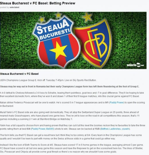 Mai multe bloguri internationale de pariuri ii sfatuiesc pe cititorii lor sa mearga pe varianta 'Ambele echipe marcheaza' la meciul de pe National Arena. Cu o cota de 1,70, pariul e considerat siguri de analisti!