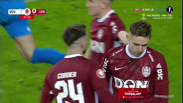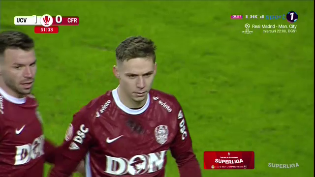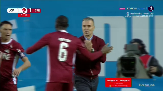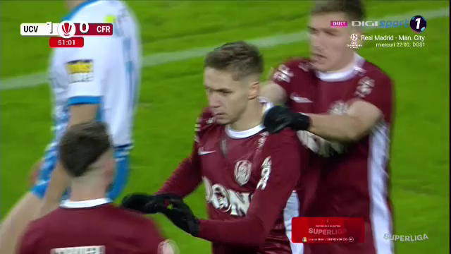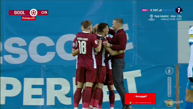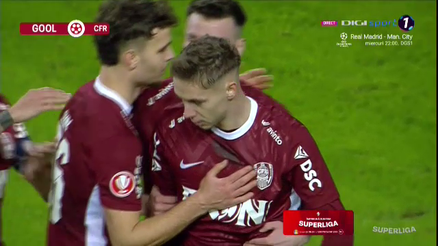 Condusă după golul lui Tudor Băluță din repriza secundă, CFR Cluj a egalat în minutul 51. Tânărul David Matei a pierdut o minge în propria jumătate de teren, iar Karlo Muhar l-a servit excelent pe Louis Munteanu, care a înscris cu un șut în diagonală din interiorul careului.