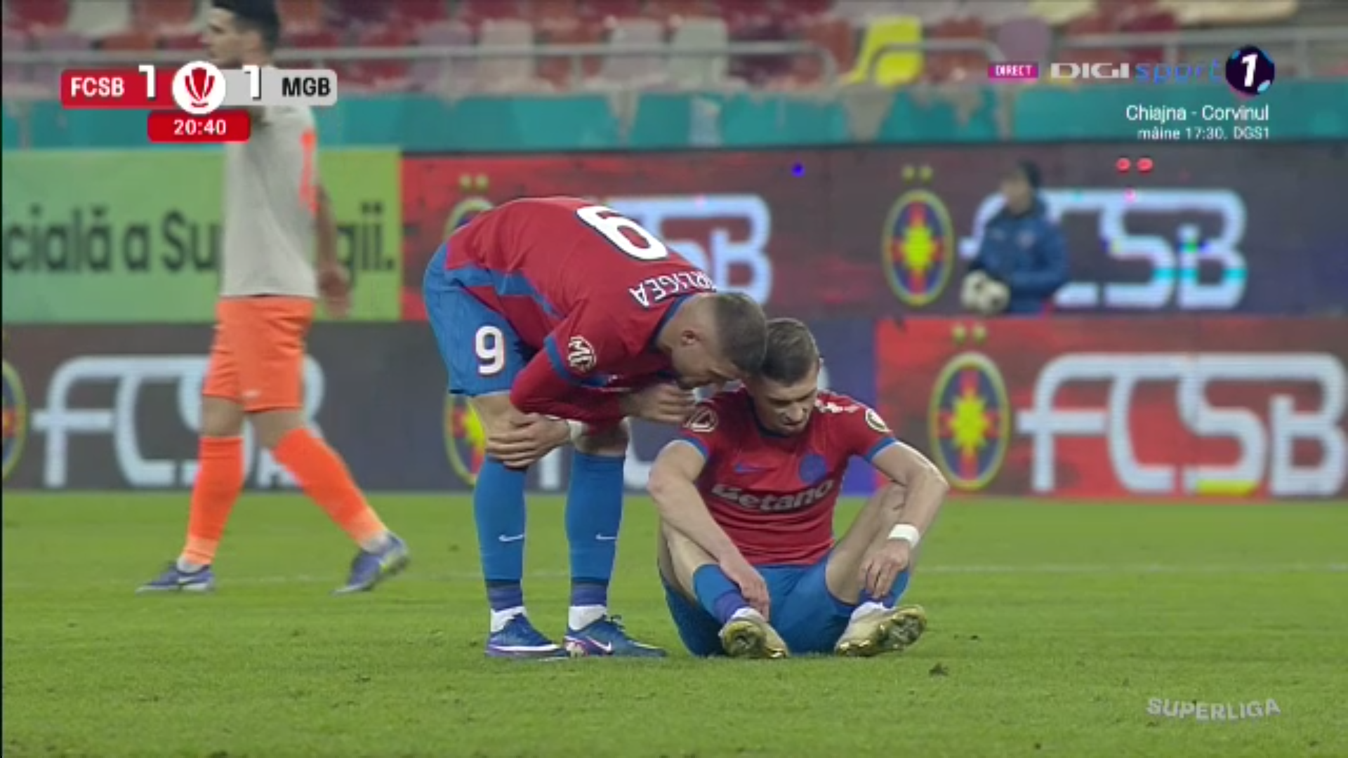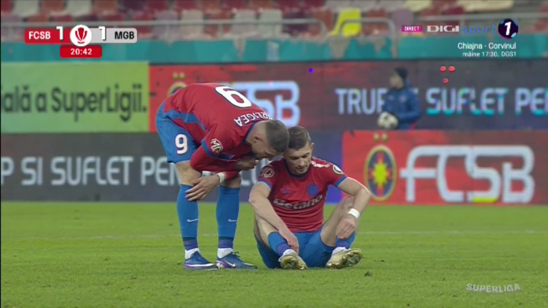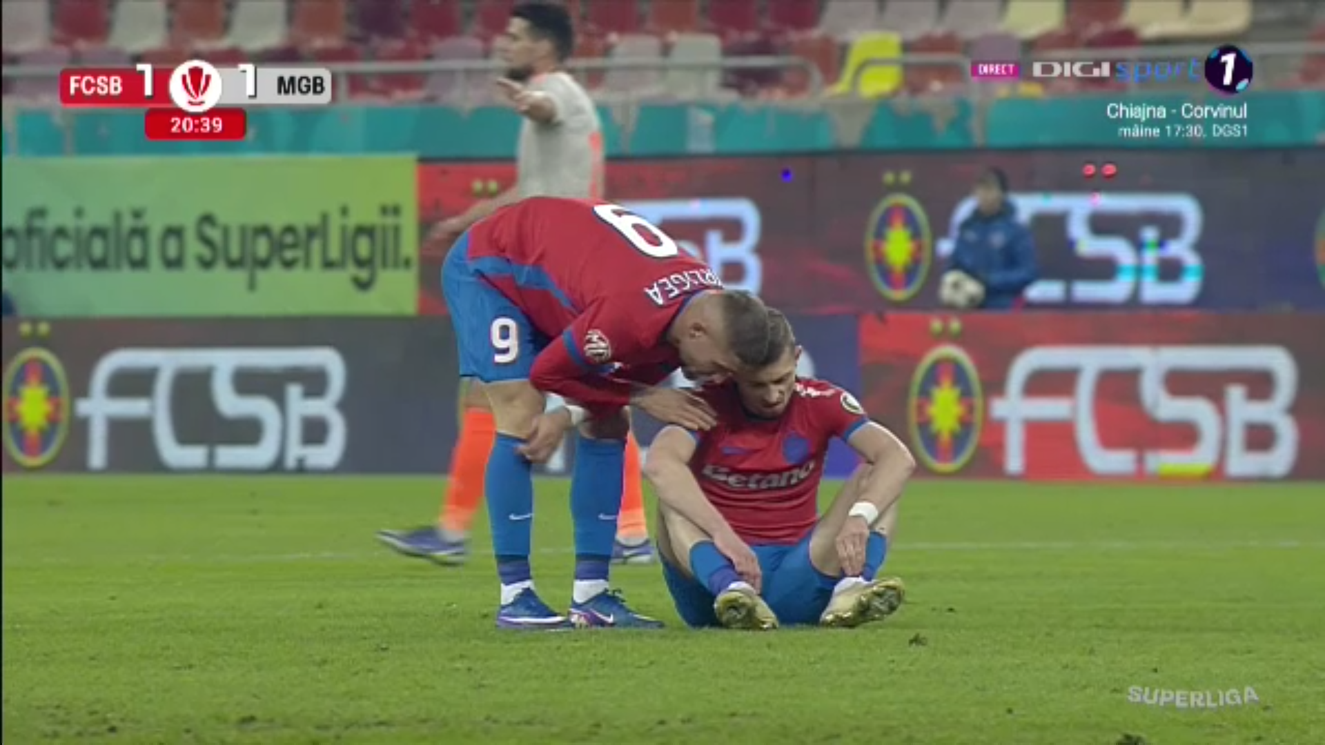 Roș-albaștrii au primit o lovitură îngrozitoare încă din prima jumătate de oră a jocului. În minutul 21, Florin Tănase a resimțit dureri și s-a așezat pe gazon. Se pare că accidentarea lui Tănase a recidivat, iar ”calculatorul” de la FCSB, așa cum îl numea Gigi Becali, nu a mai putut continua jocul.