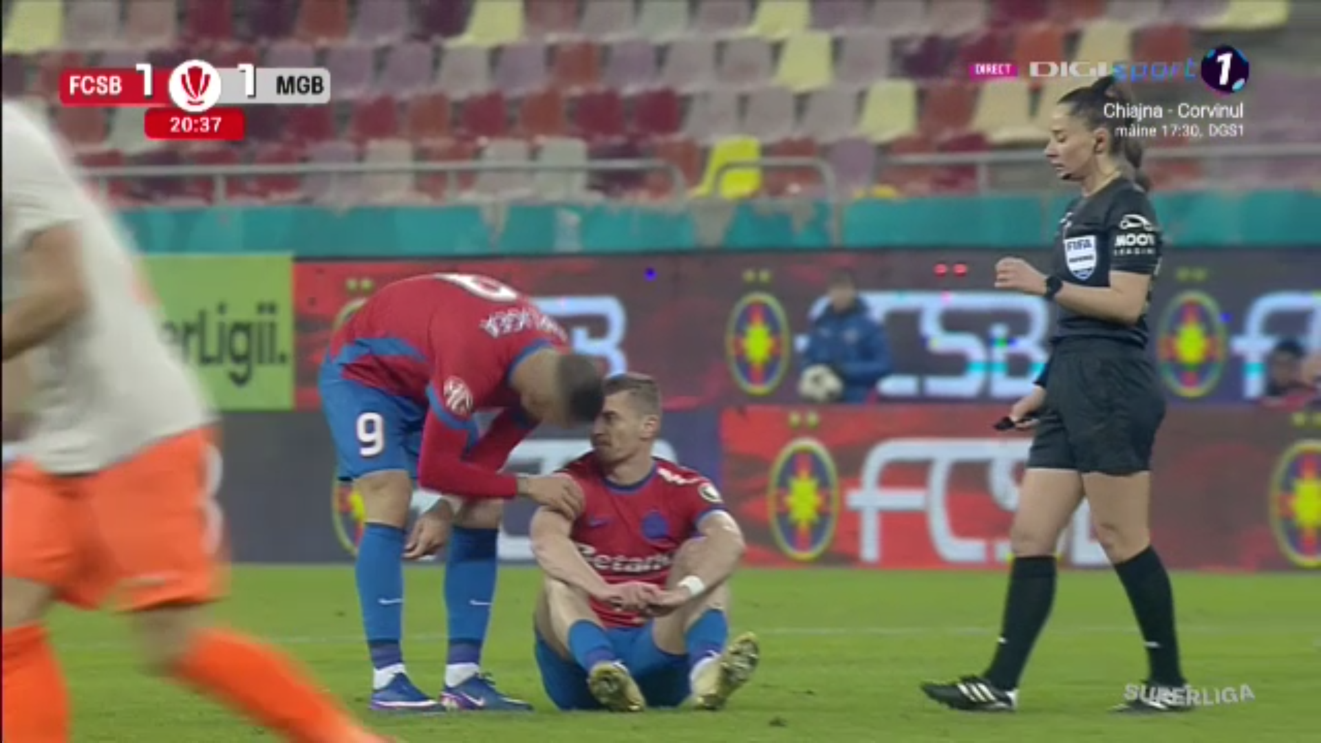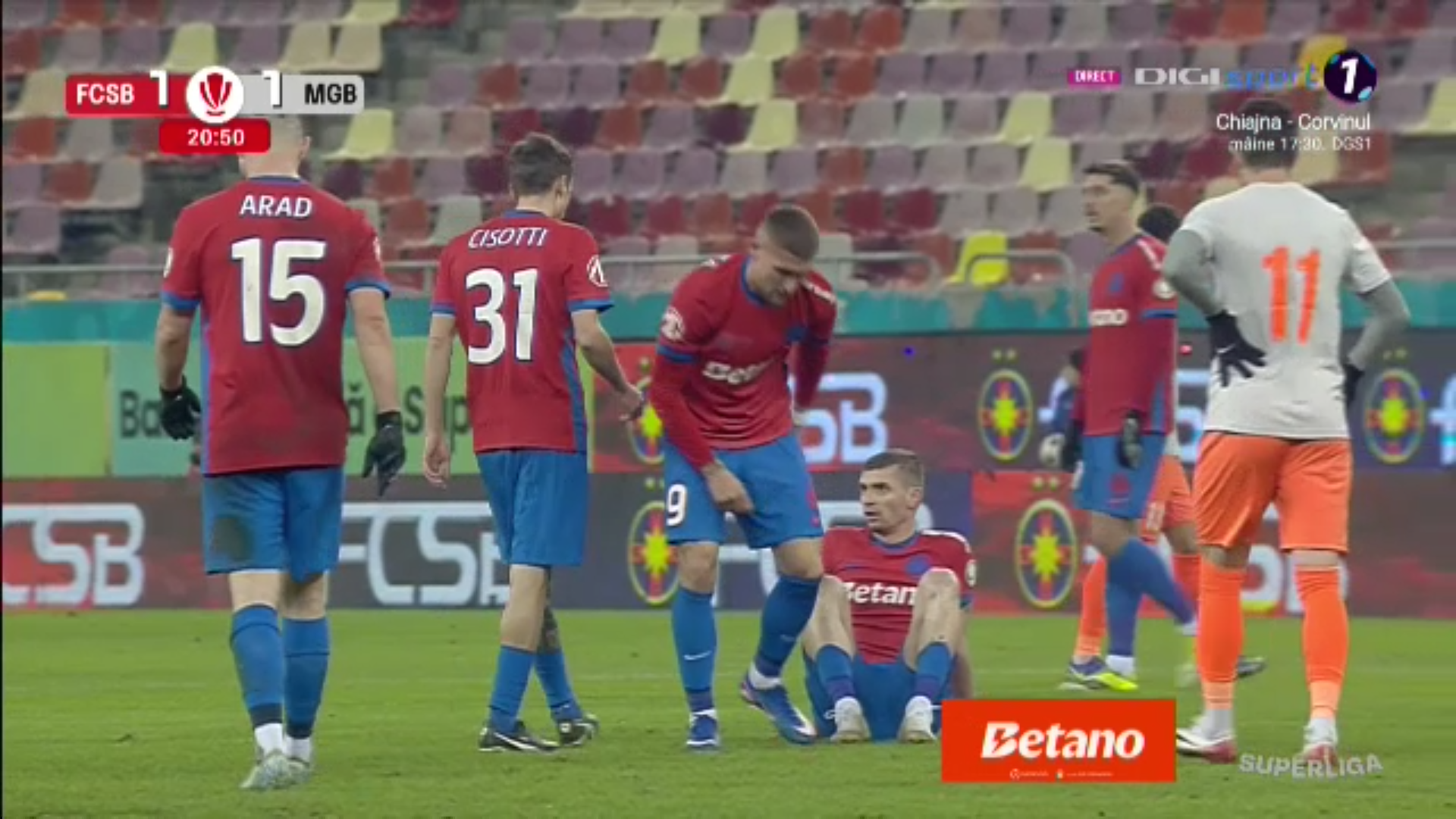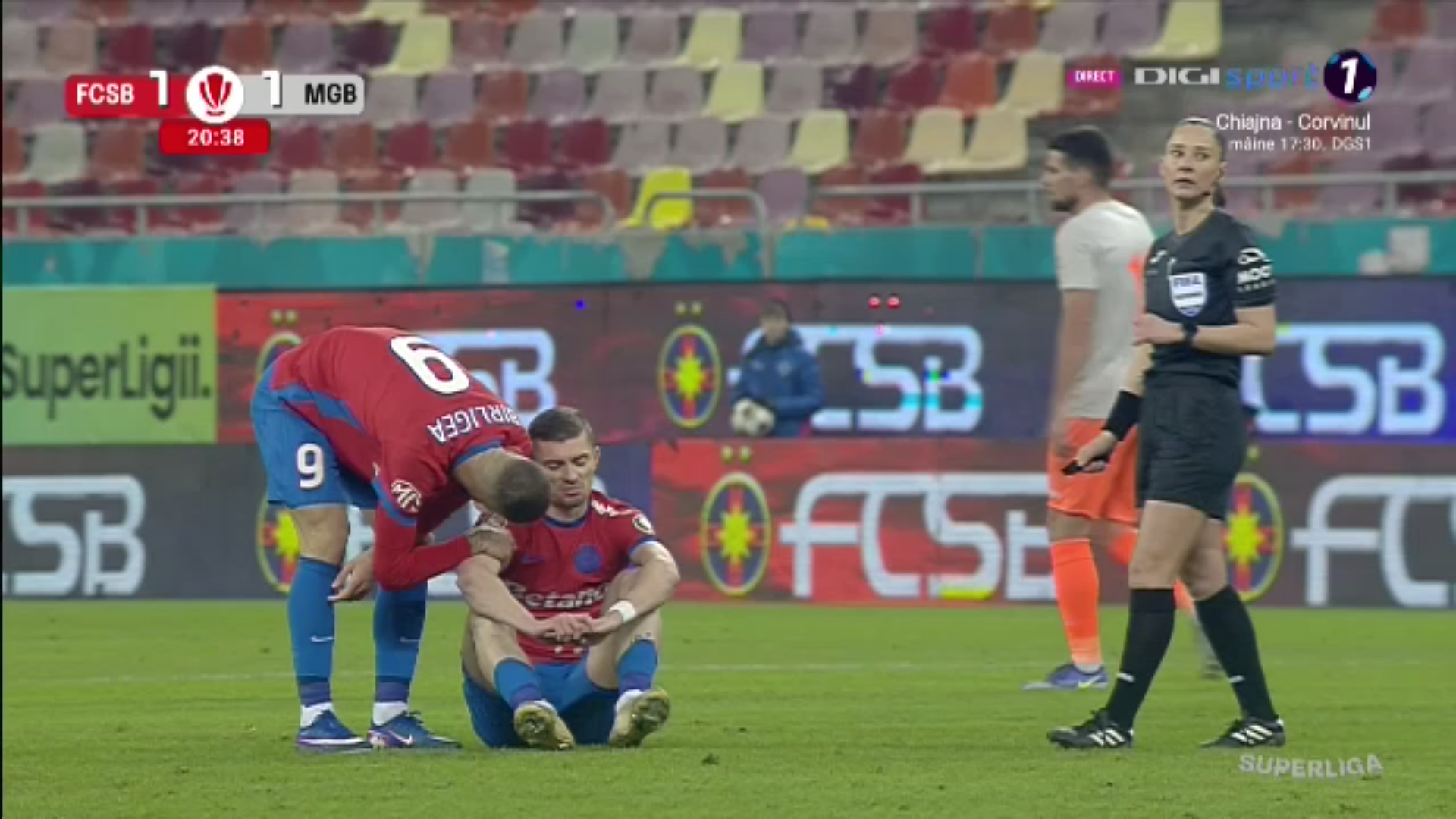 Roș-albaștrii au primit o lovitură îngrozitoare încă din prima jumătate de oră a jocului. În minutul 21, Florin Tănase a resimțit dureri și s-a așezat pe gazon. Se pare că accidentarea lui Tănase a recidivat, iar ”calculatorul” de la FCSB, așa cum îl numea Gigi Becali, nu a mai putut continua jocul.