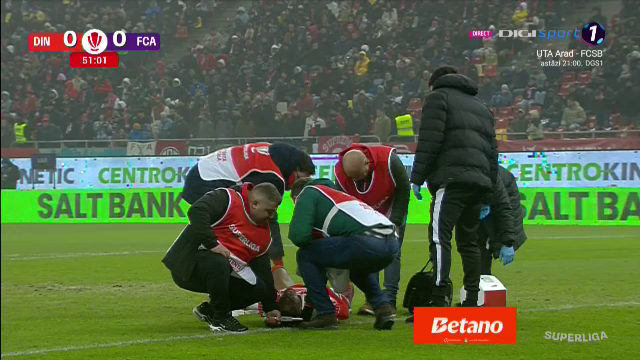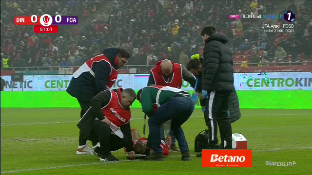 După o primă repriză în care a bifat o ocazie periculoasă, lovind bara porții lui Cătălin Căbuz, Mamoudou Karamoko a suferit o accidentare serioasă și a fost scos pe targă în afara terenului.