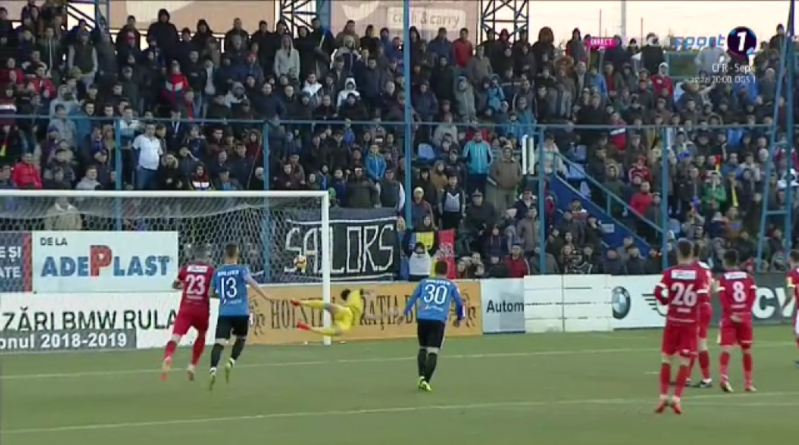 min 56: Golofca trage din interiorul careului, Cojocaru prinde fara probleme.