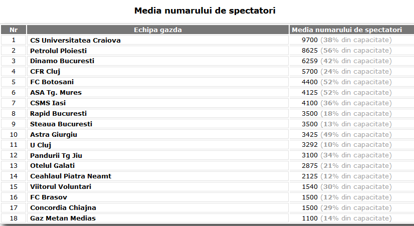 Fosta campioana a Romaniei ocupa penultima pozitie in clasament, iar interesul fanilor pentru meciurile din campionat s-a redus drastic in ultima perioada.
