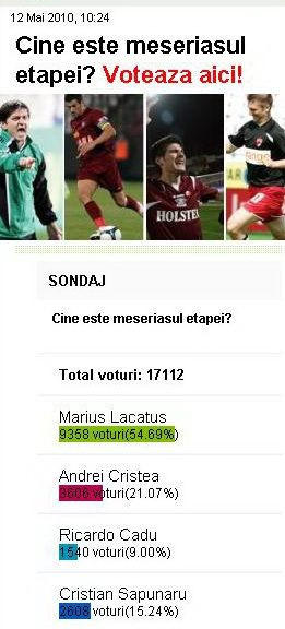 Marius Lacatus a fost votat meseriasul etapei dupa ce a condus Vasluiul spre victorie in meciul cu Steaua, scor 2-1.