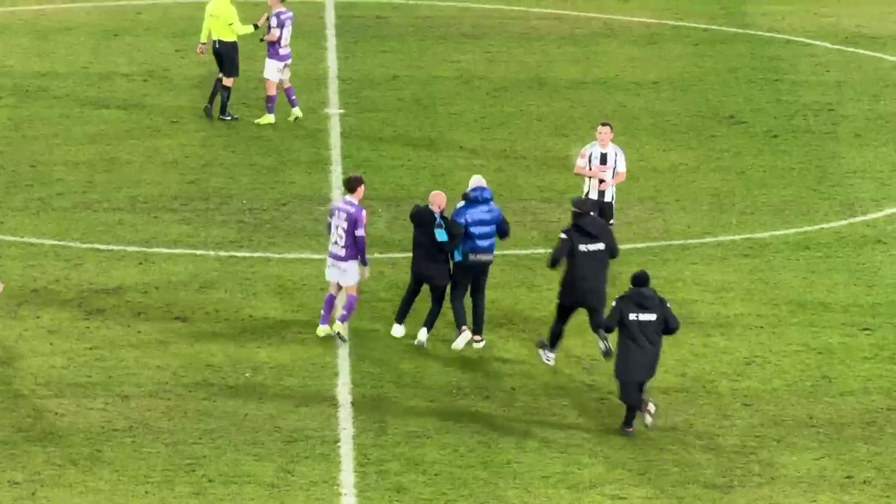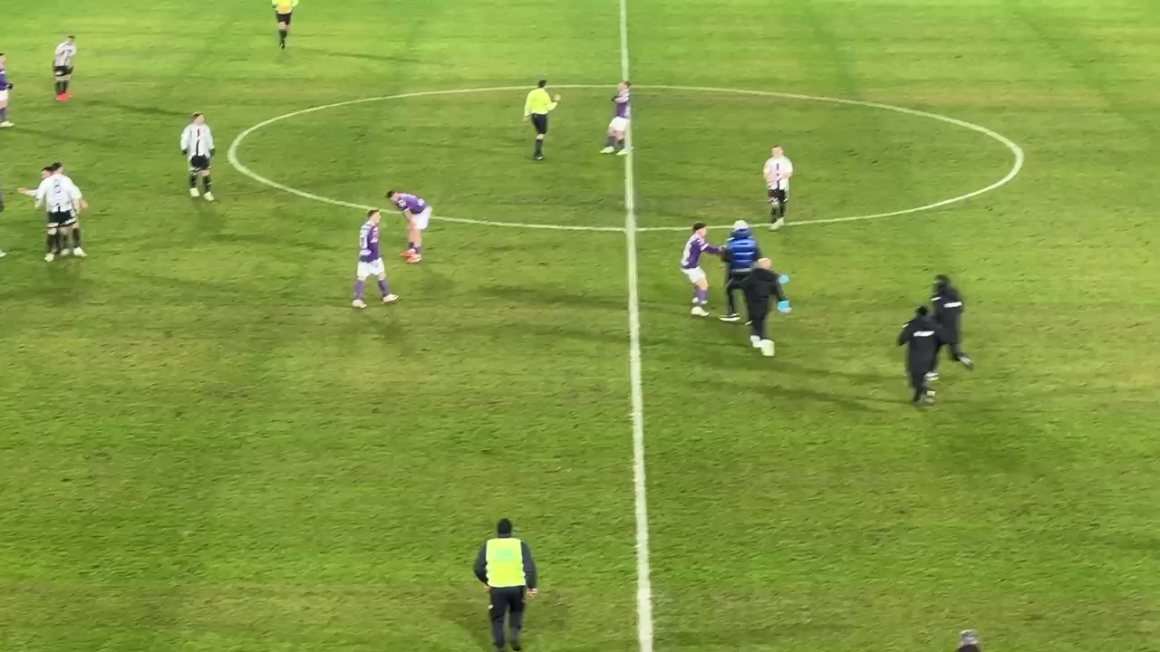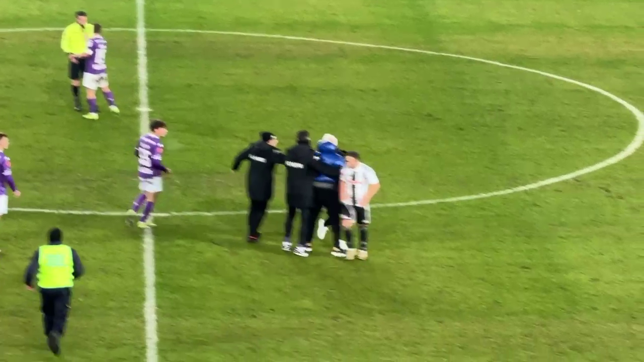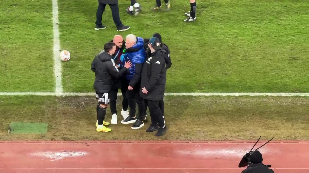 Marius Șumudică, antrenorul lui Rapid, s-a dus ”glonț” spre centrul terenului, unde se afla Adrian Cojocaru, arbitrul partidei. Tehnicianul giuleștenilor a fost cu greu stăpânit de staff-ul tehnic și a fost împins la marginea terenului.