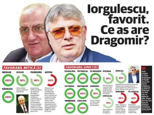 Dragomir stie ca Steaua, Viitorul, Otelul, Ceahlaul, Botosani si Corona Brasov sunt de partea lui Gino Iorgulescu, dar ProSport a aflat ca Dinamo, Vaslui si CFR Cluj vor vota si ele pentru schimbare.