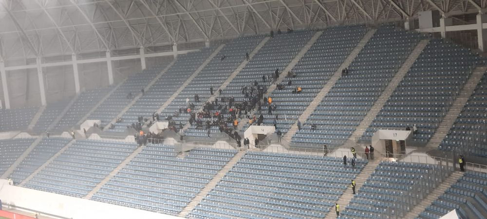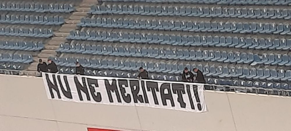 Cu o prezență redusă pe stadion, fanii din Peluza Sud au afișat un banner cu mesajul "Nu ne meritați!" și au decis să urce la inelul al doilea.