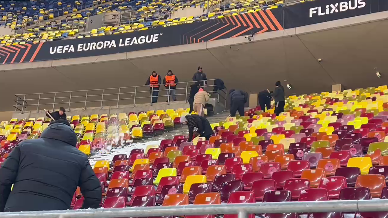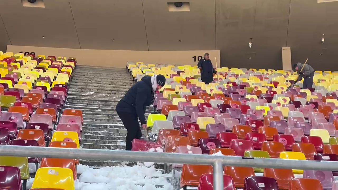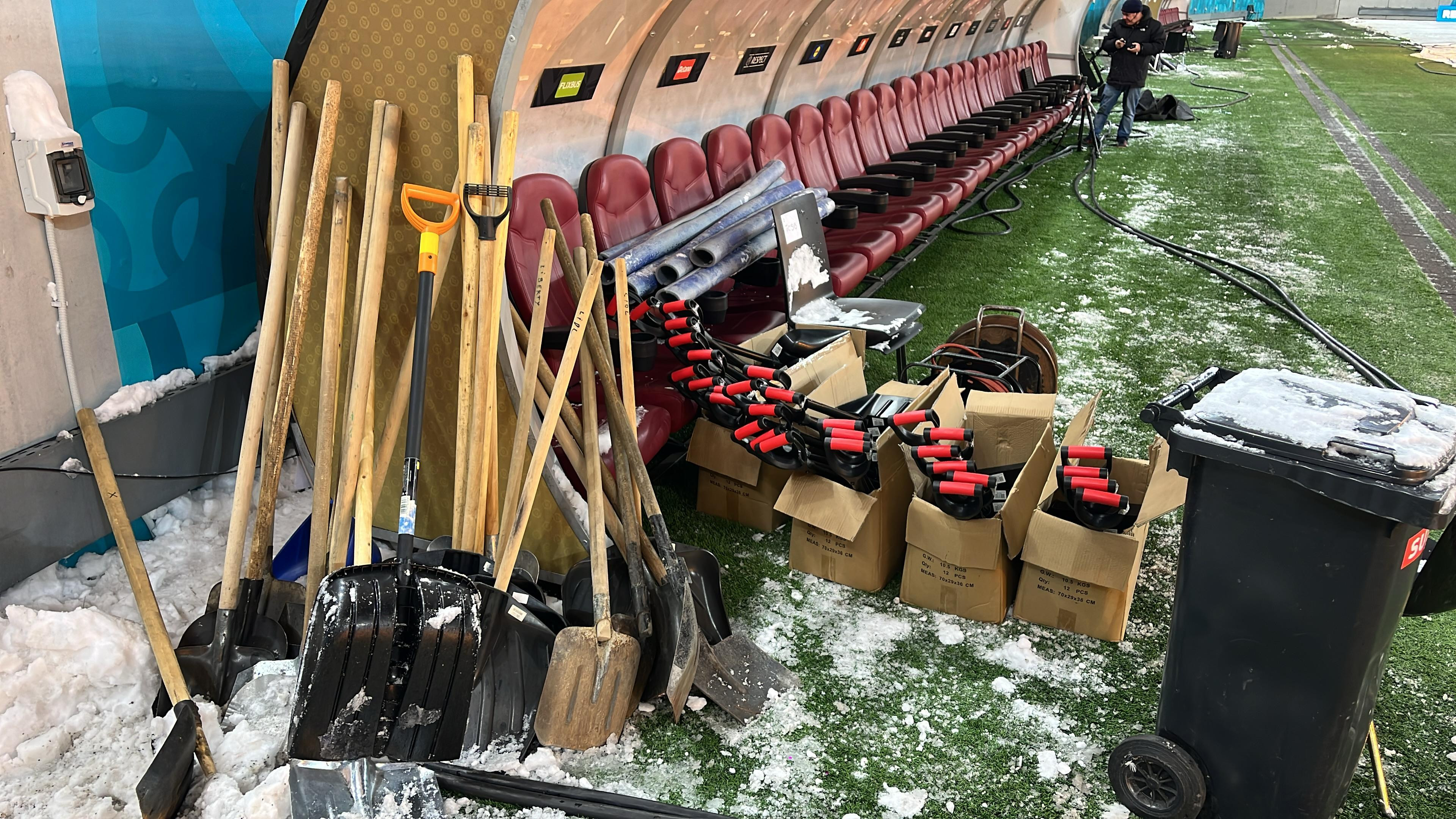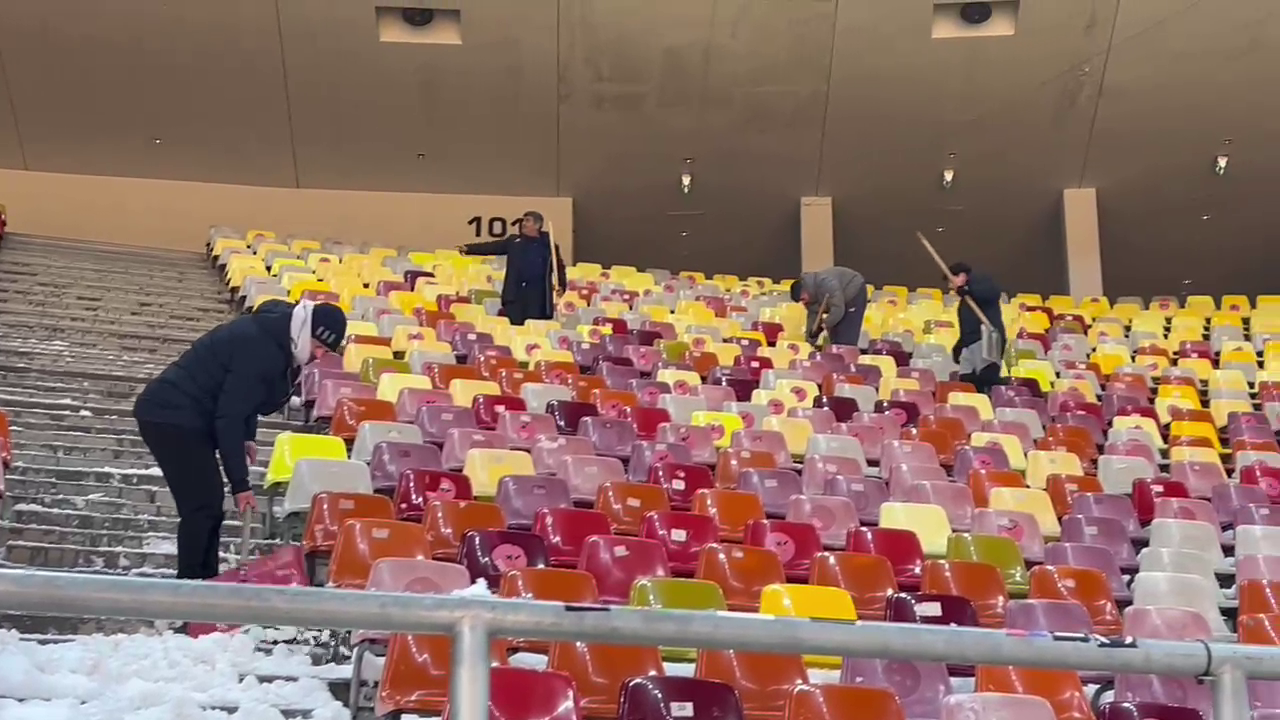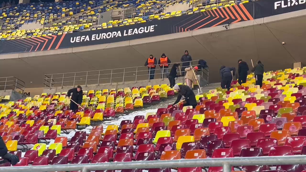 Aproximativ 200-300 de suporteri, echipați cu lopeți, s-au implicat prompt în deszăpezirea tribunelor Arenei Naționale, pentru a asigura desfășurarea partidei în condiții optime. Imaginile au fost transmise de corespondentul PRO TV, Paul Ciucă și pot fi văzute în galeria afișată mai jos.