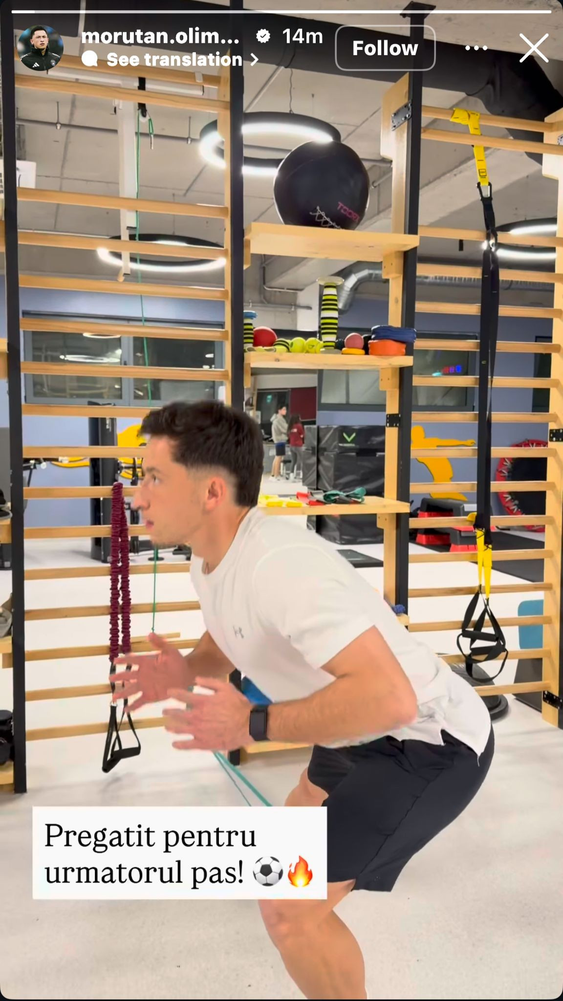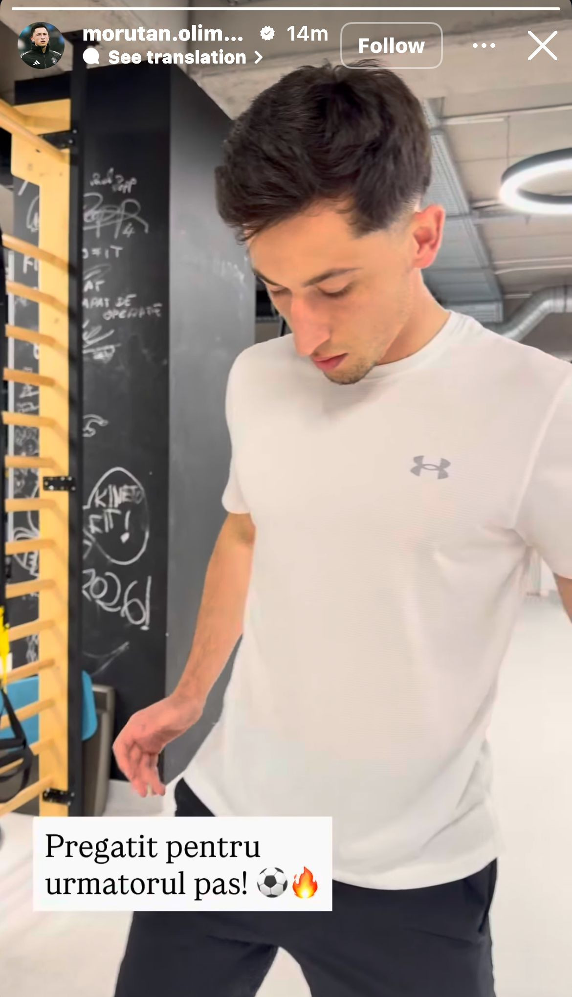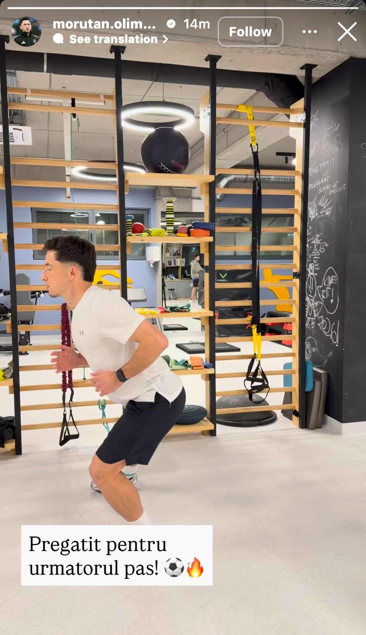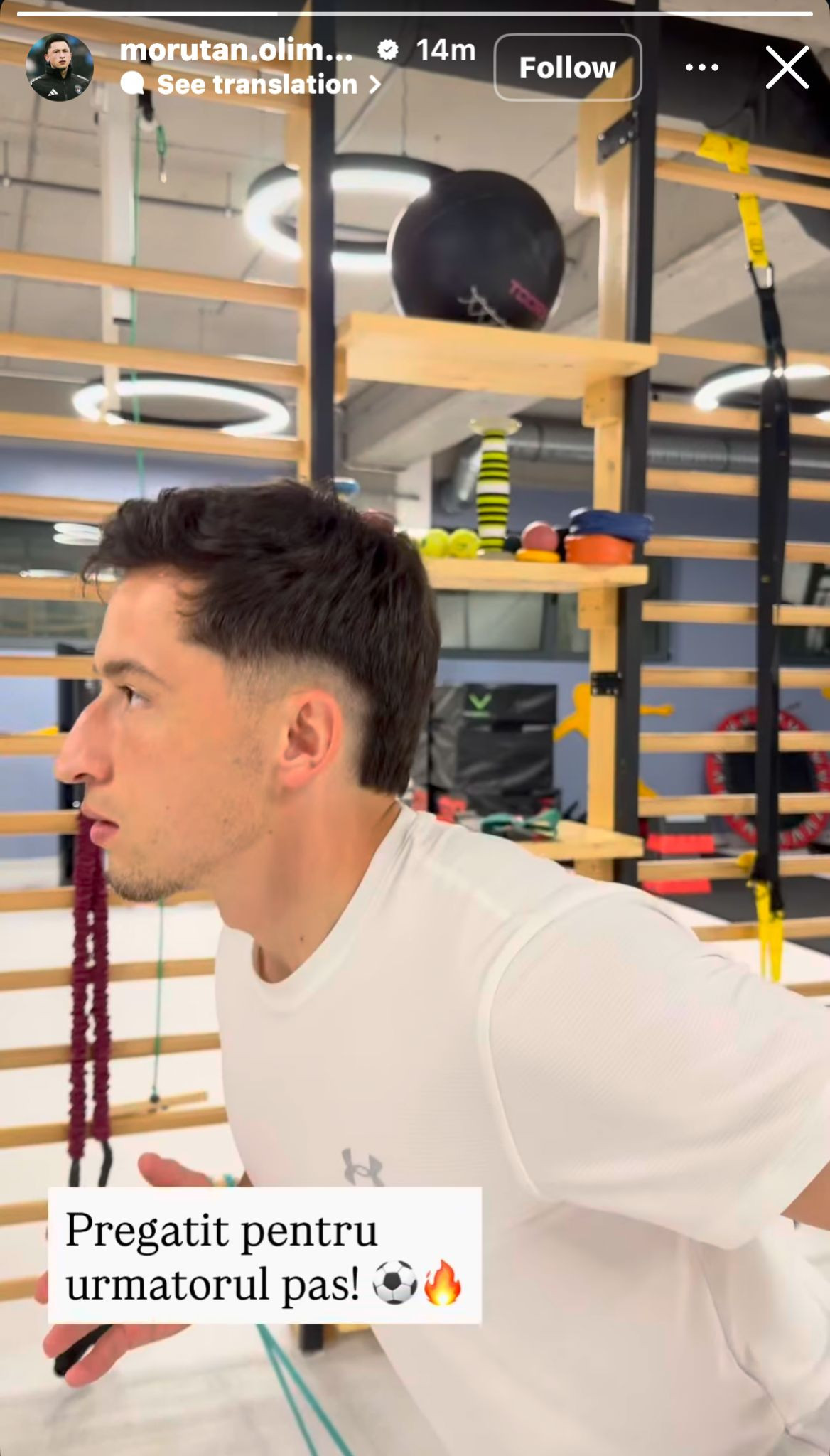 Până la oficializarea mutării, Olimpiu Moruțan s-a filmat la sala de forțe și a publicat videoclipul pe contul său oficial de Instagram, alături și de un mesaj.
