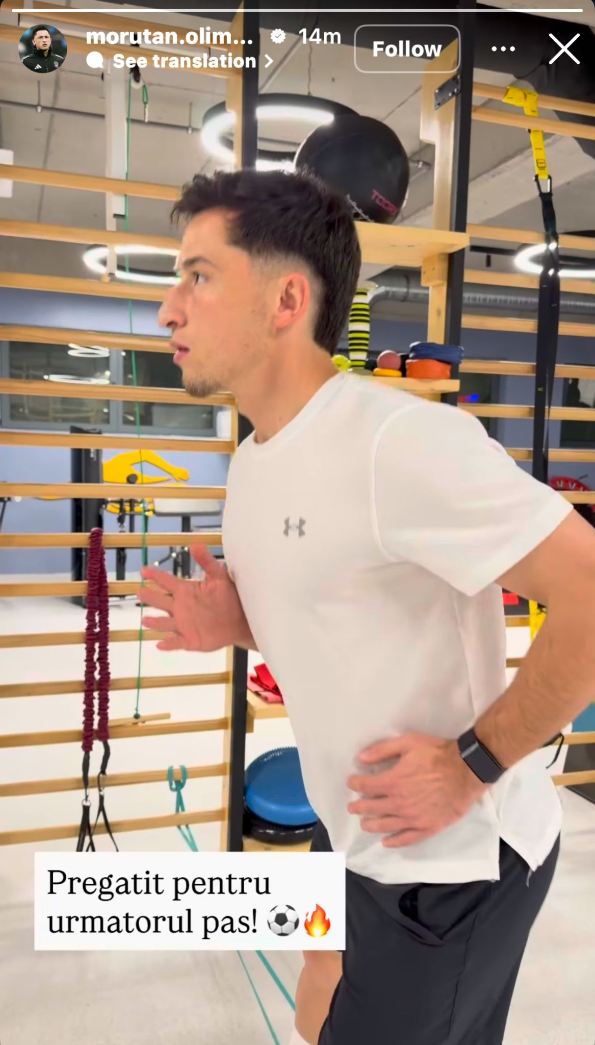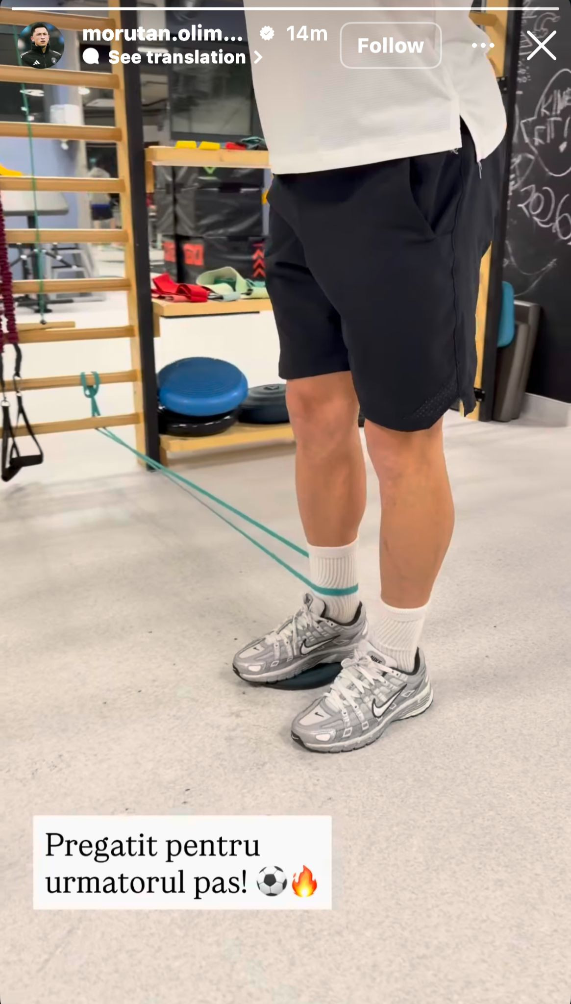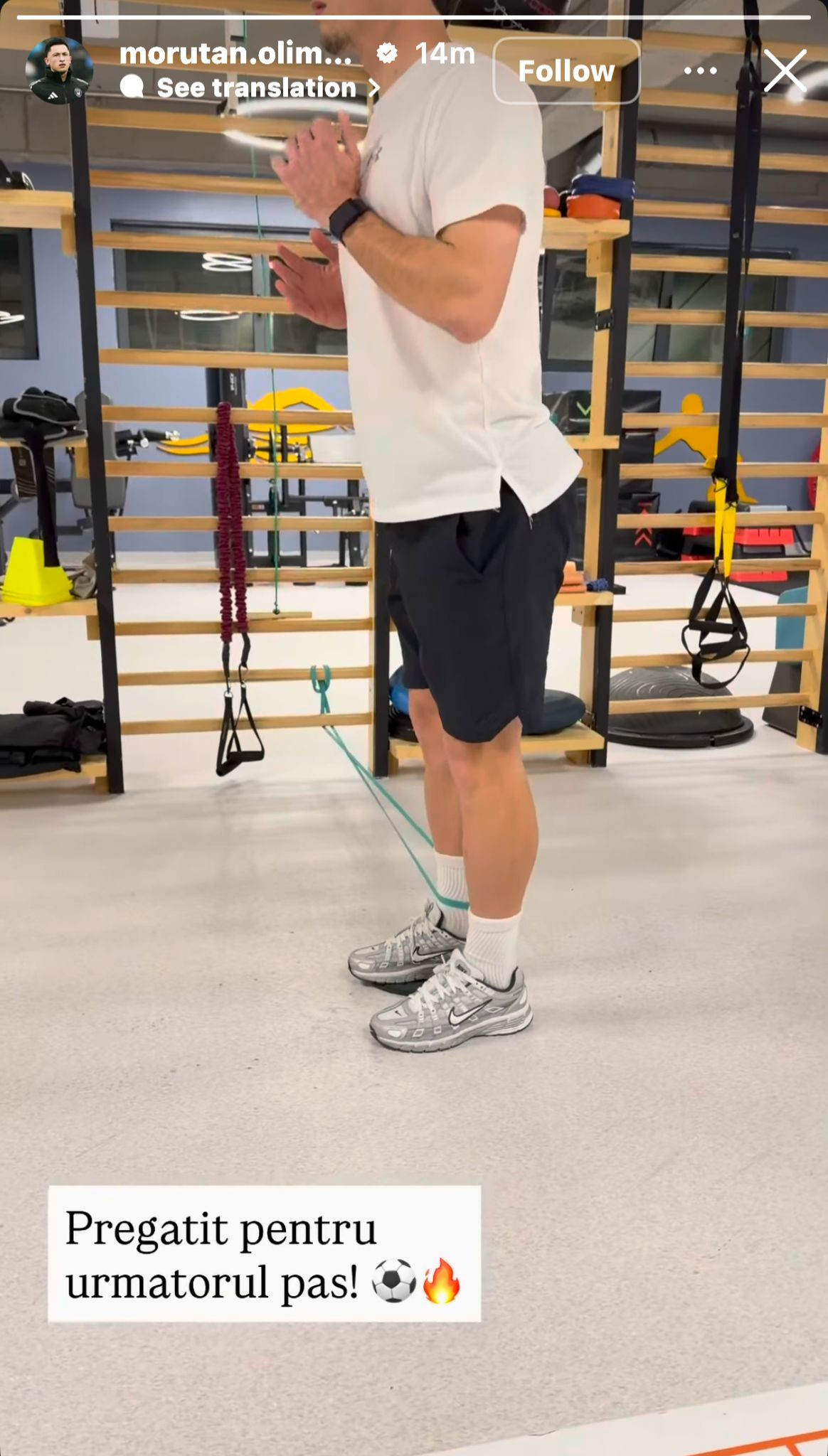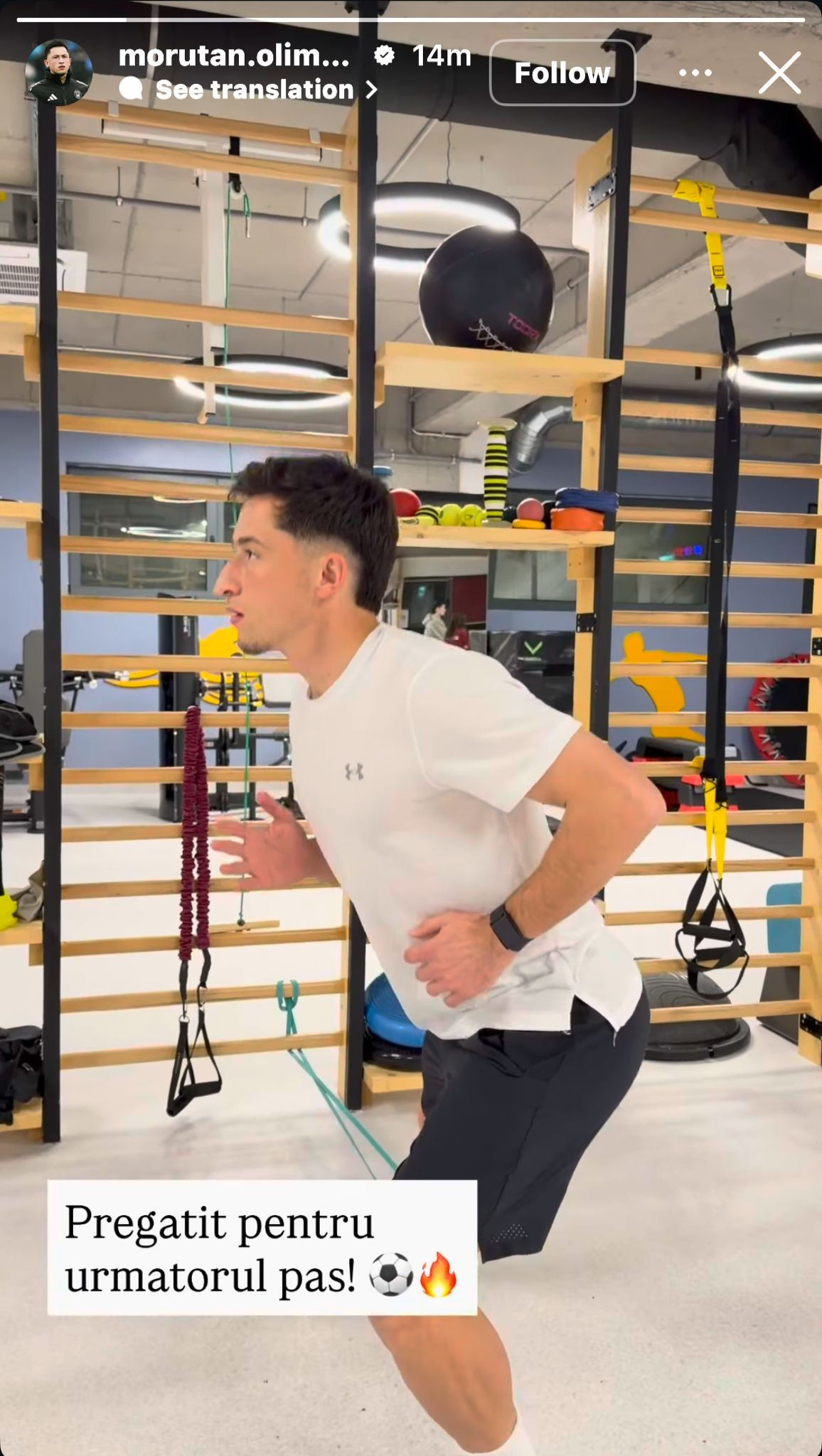 Până la oficializarea mutării, Olimpiu Moruțan s-a filmat la sala de forțe și a publicat videoclipul pe contul său oficial de Instagram, alături și de un mesaj.