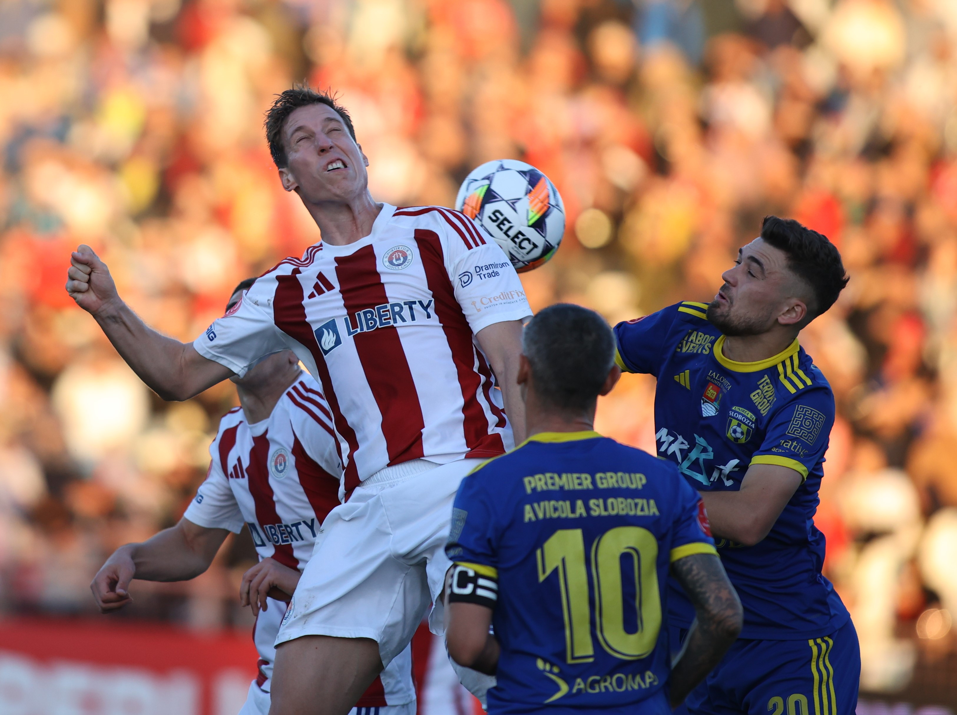 Min. 10: Ocazie Oțelul! Stefanovic se înalță bine la o centrare venită din corner, dar trimite cu capul peste poarta oaspeților.