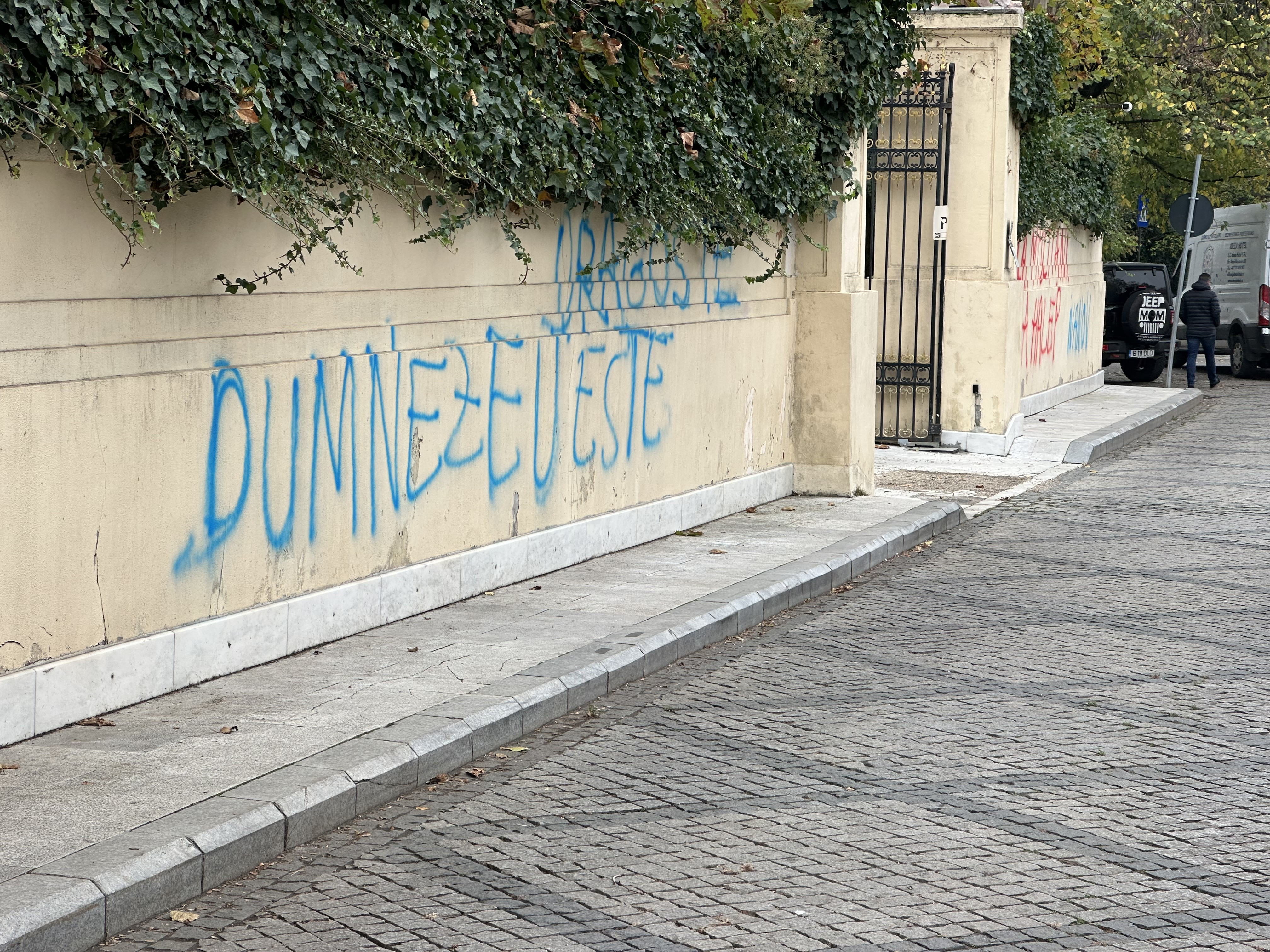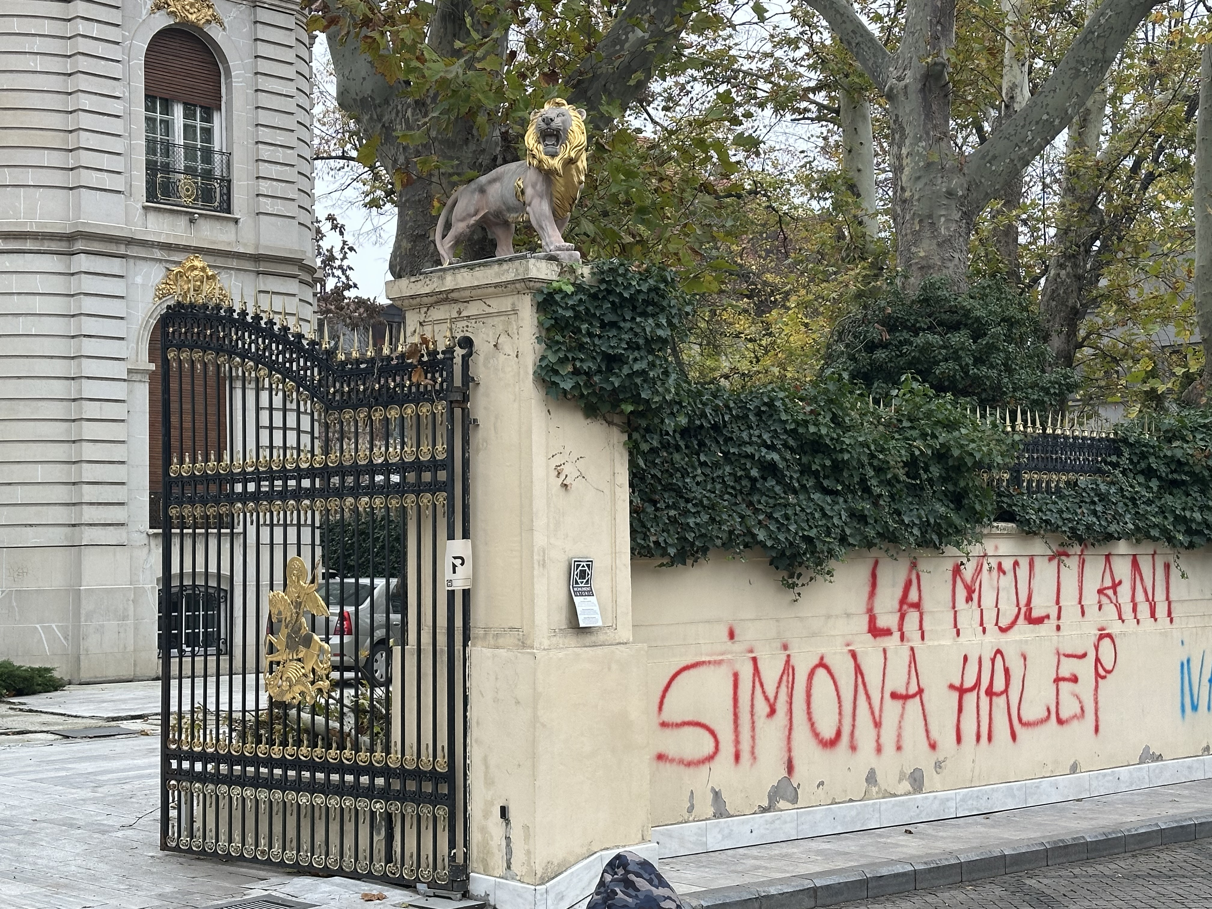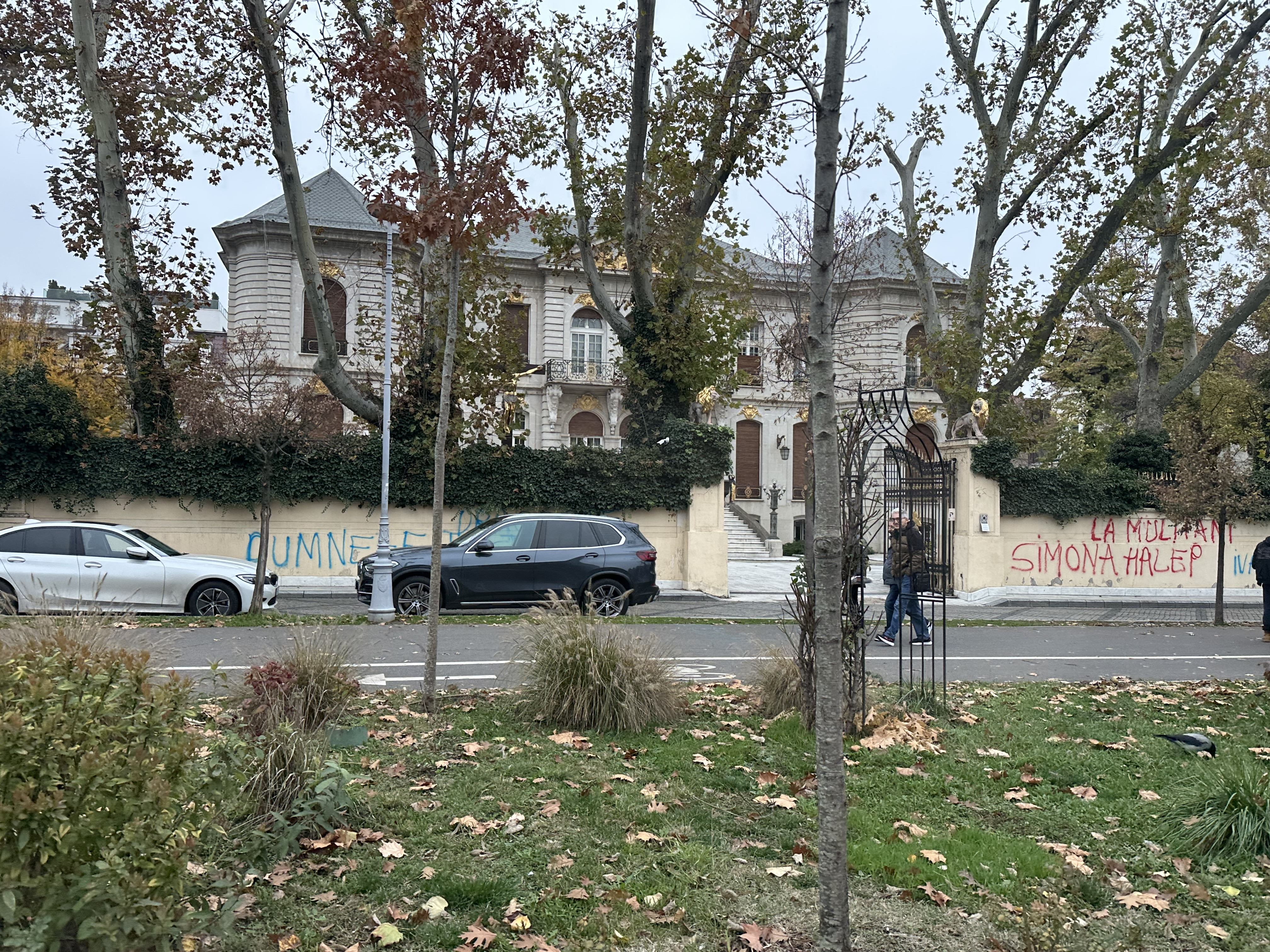 Pe gardurile palatului au fost desenate mai multe mesaje, printre care "Dumnezeu este dragoste, Ivanov Nebunu" sau "La mulți ani, Simona Halep! Ivanov". Fosta jucătoare de tenis s-a născut pe 27 septembrie, dar nu are nicio legătură cu protestatarul.