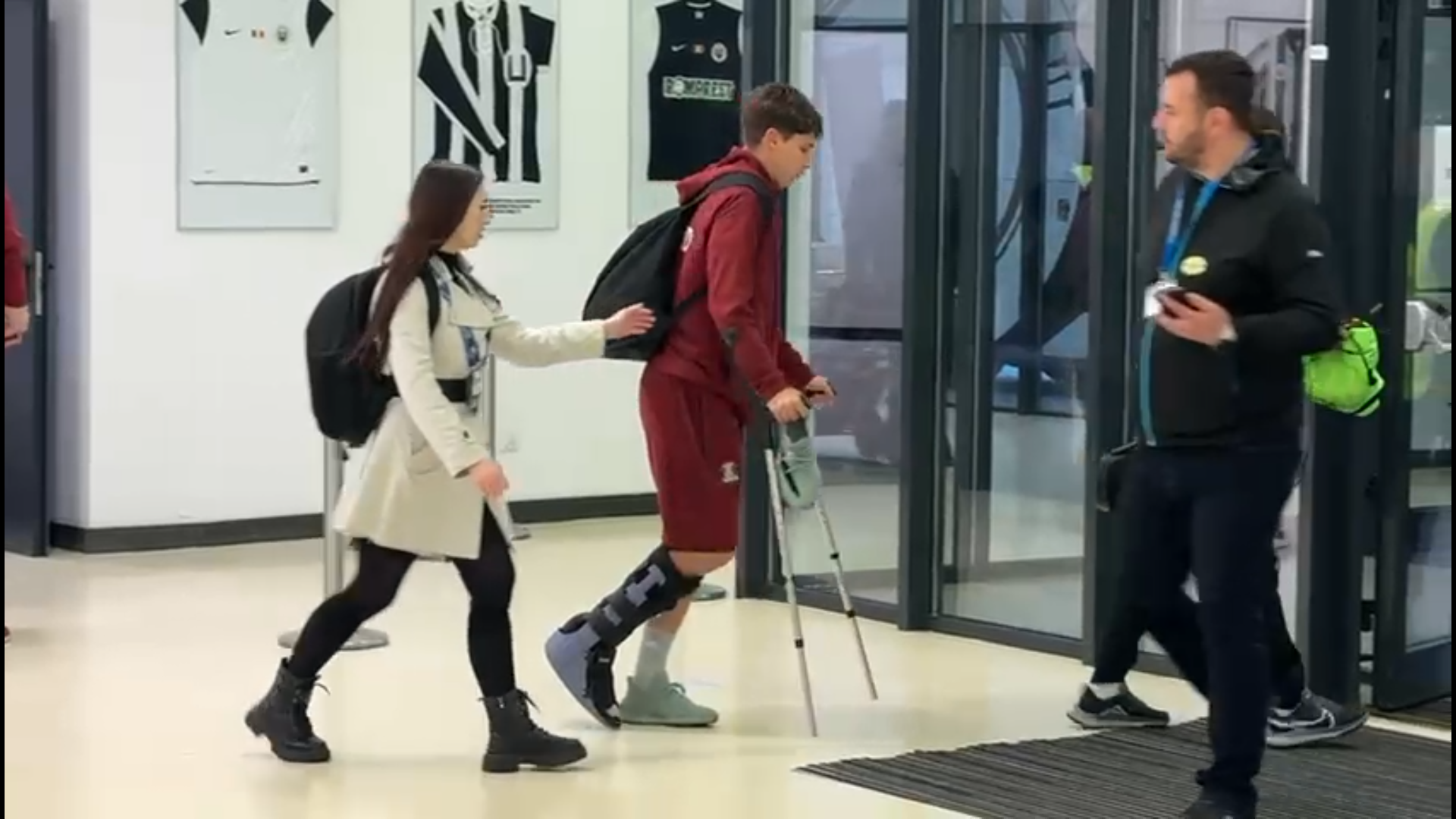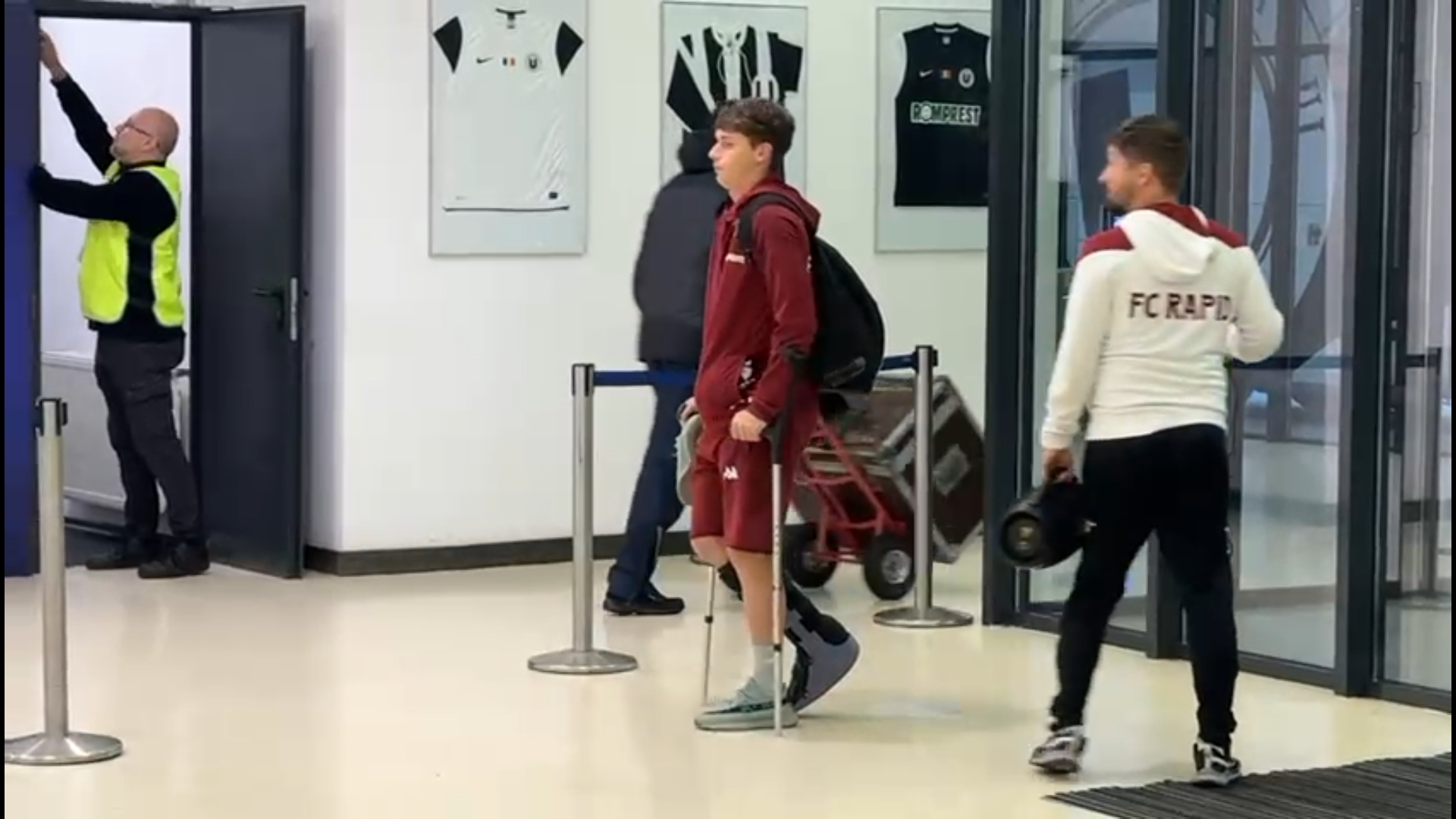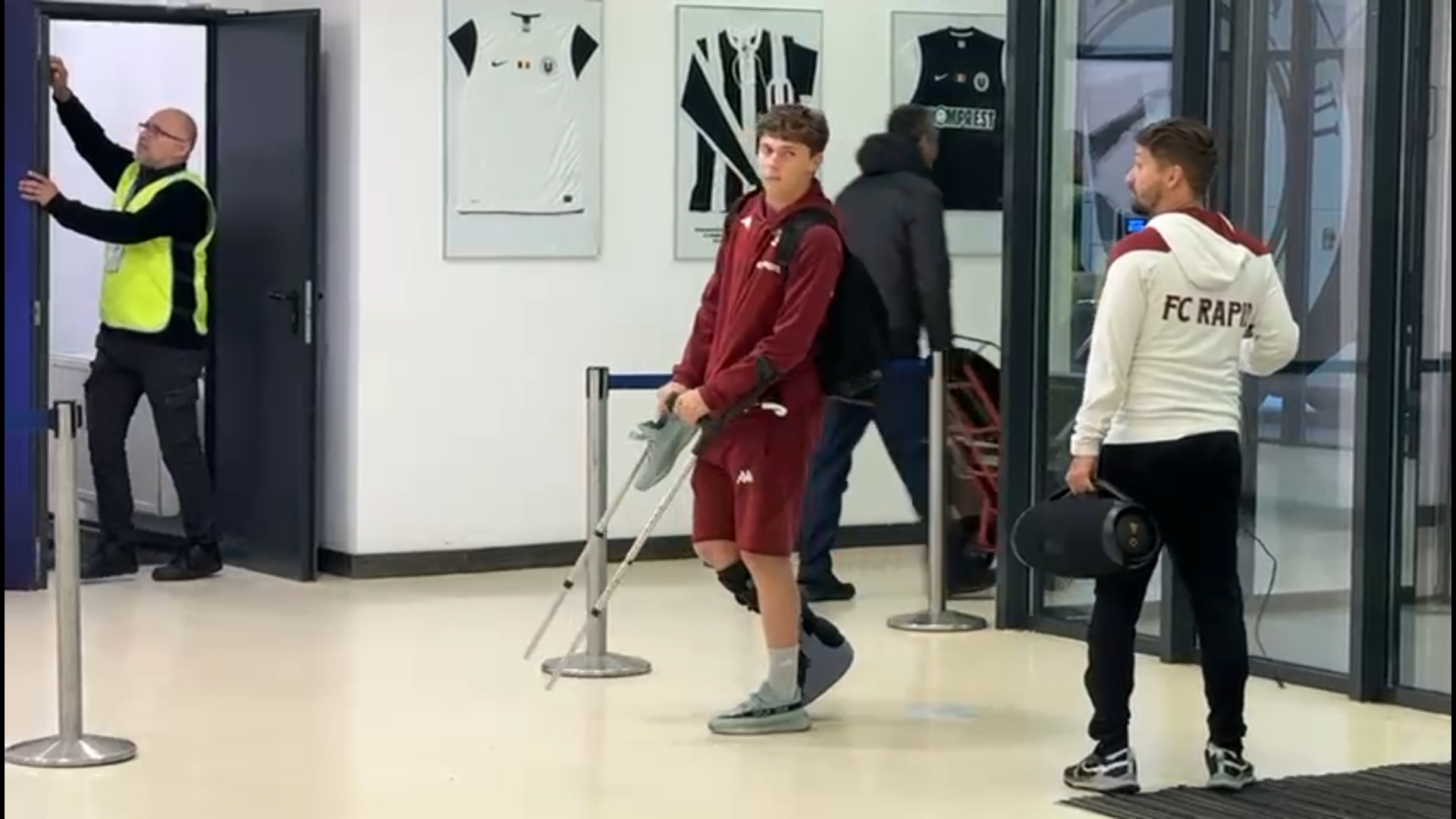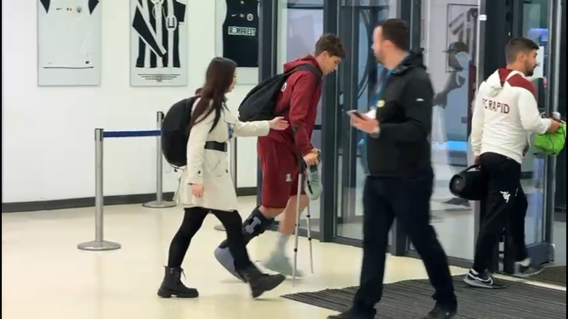 După meci, jucătorul de 19 ani a fost surprins cu o cizmă de imobilizare montată la glezna piciorului drept, în timp ce se deplasa cu ajutorul cârjelorr.