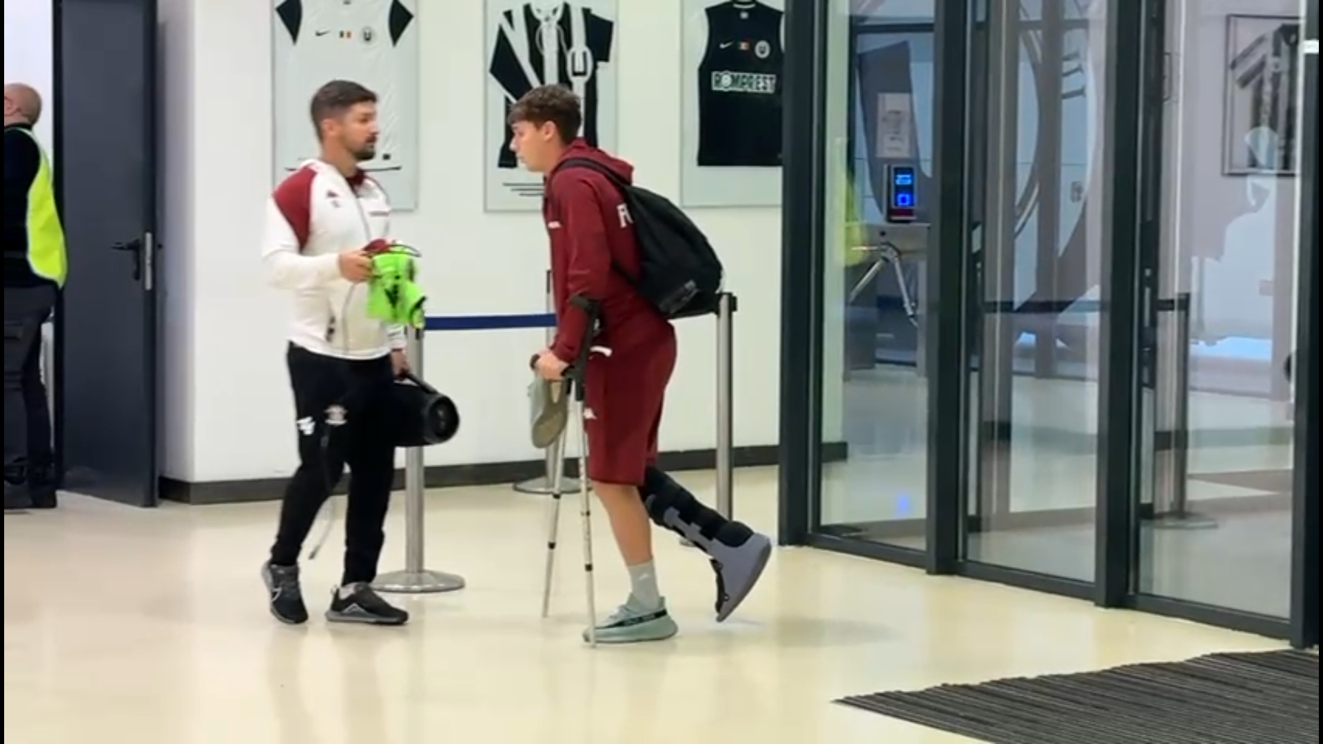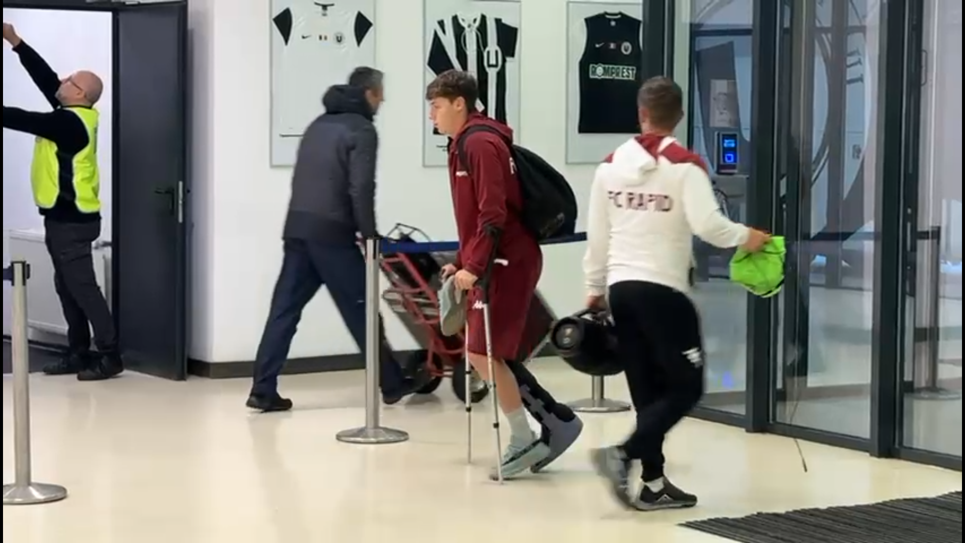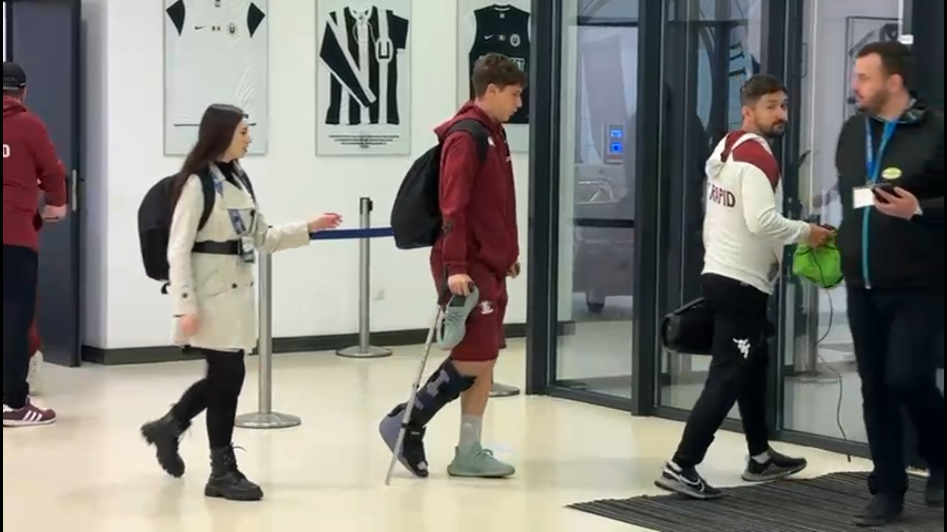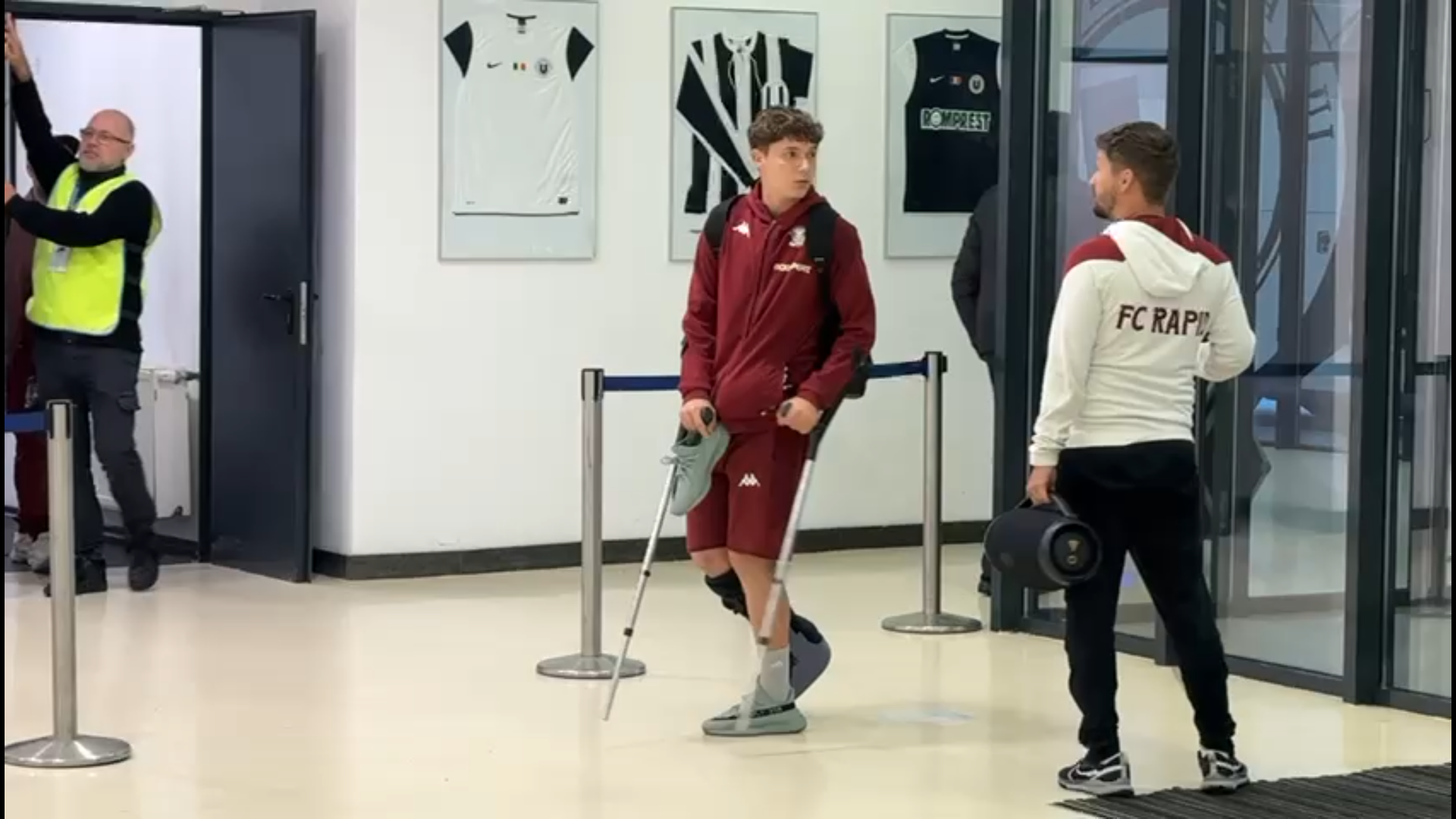 După meci, jucătorul de 19 ani a fost surprins cu o cizmă de imobilizare montată la glezna piciorului drept, în timp ce se deplasa cu ajutorul cârjelorr.