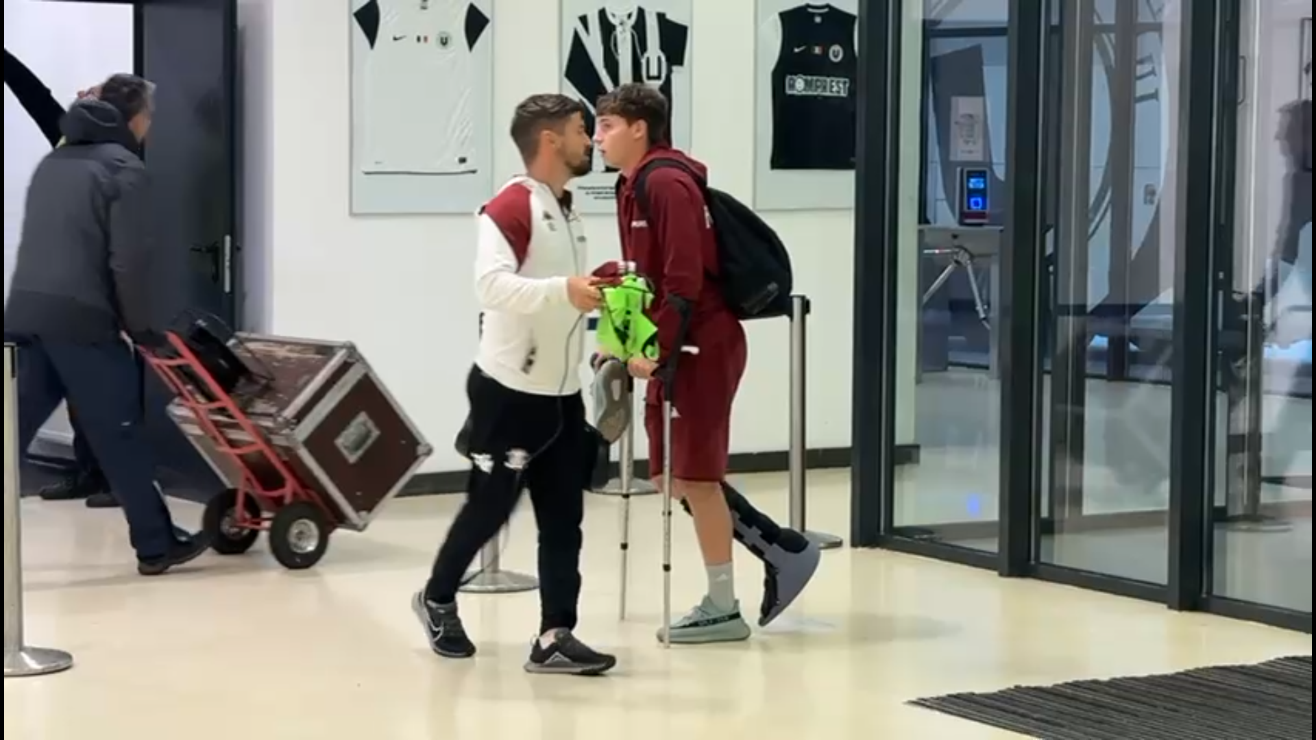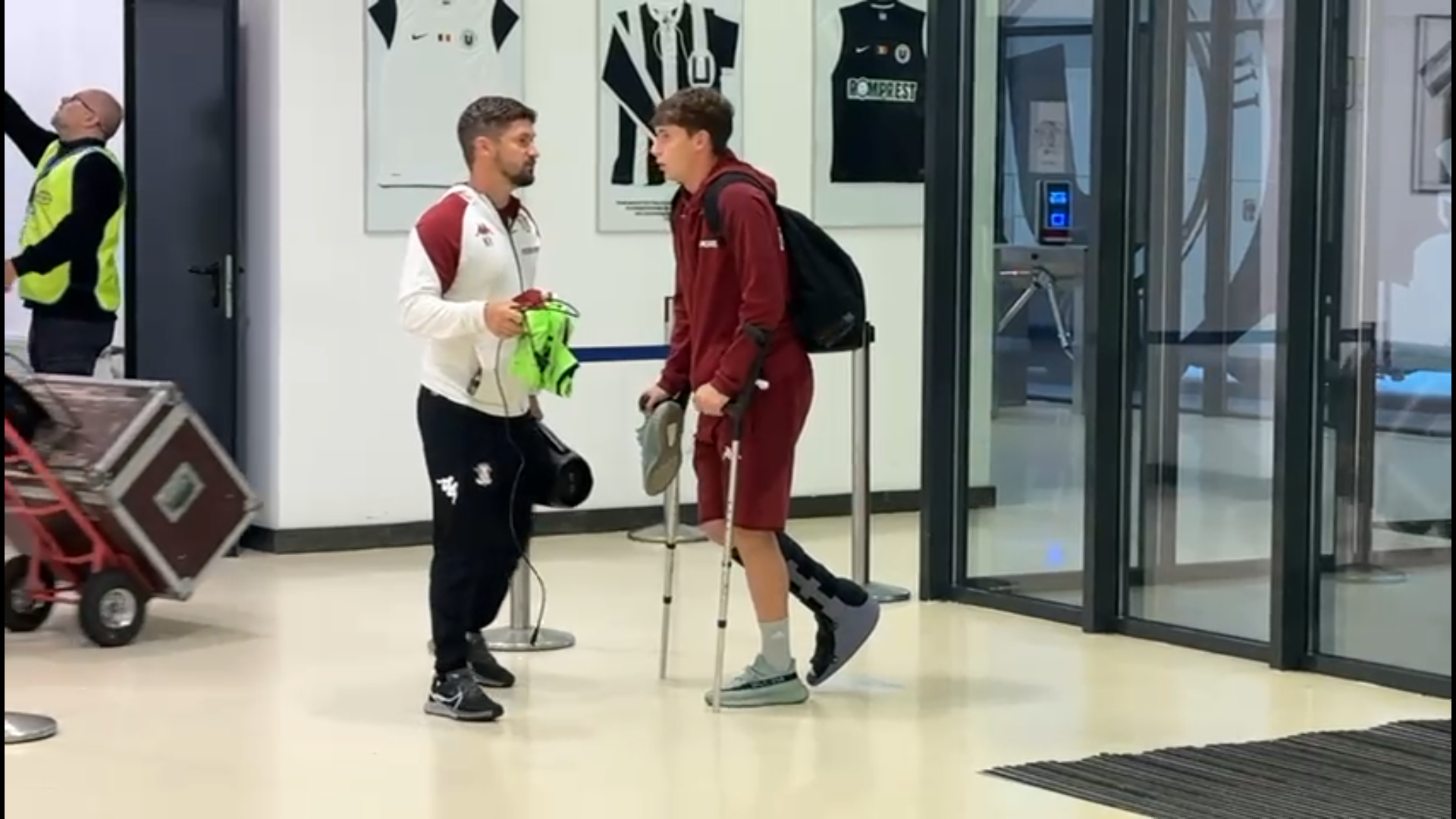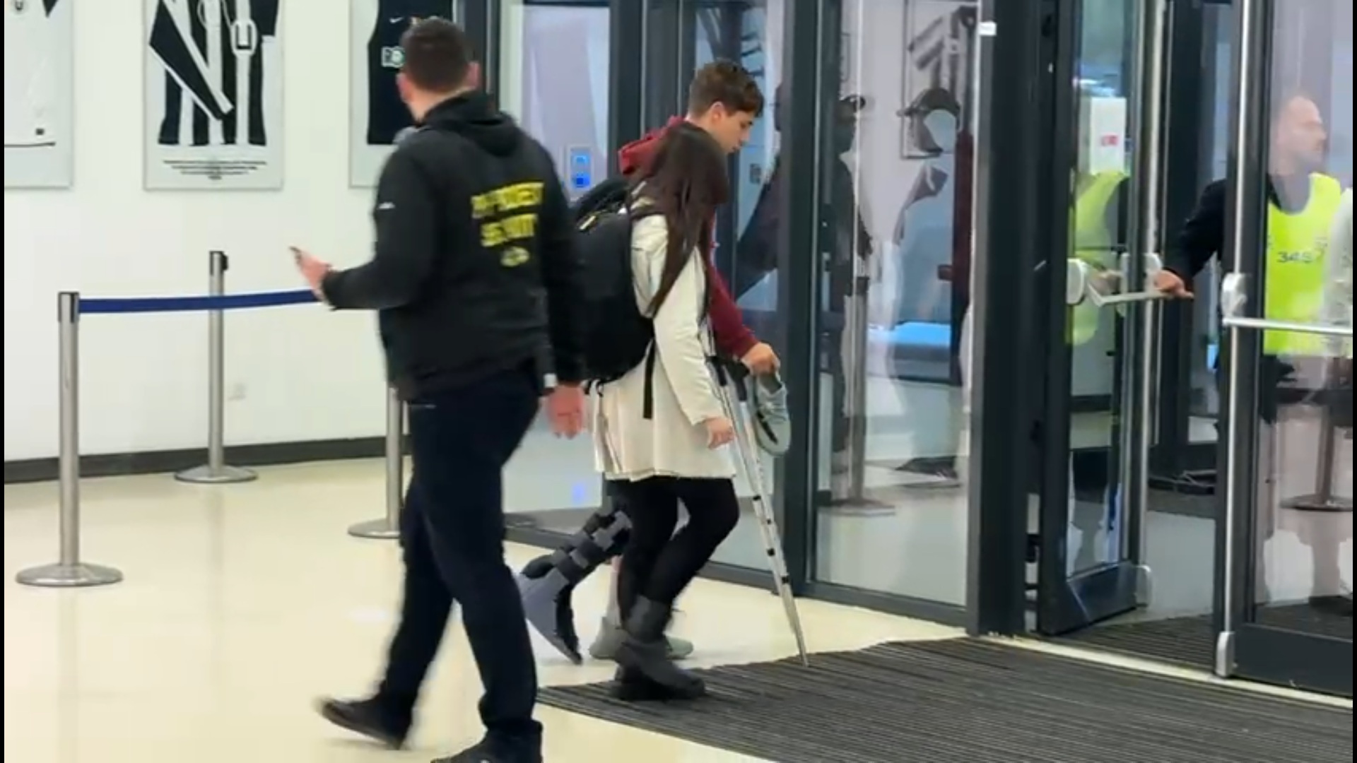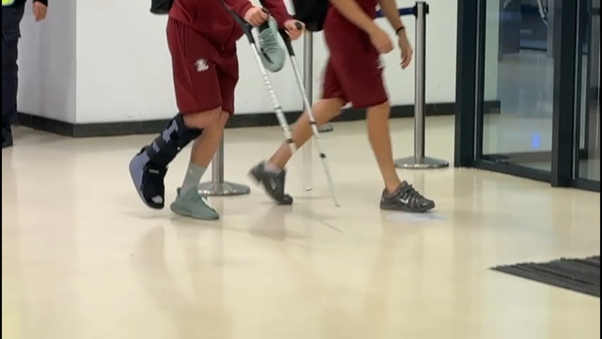 După meci, jucătorul de 19 ani a fost surprins cu o cizmă de imobilizare montată la glezna piciorului drept, în timp ce se deplasa cu ajutorul cârjelorr.