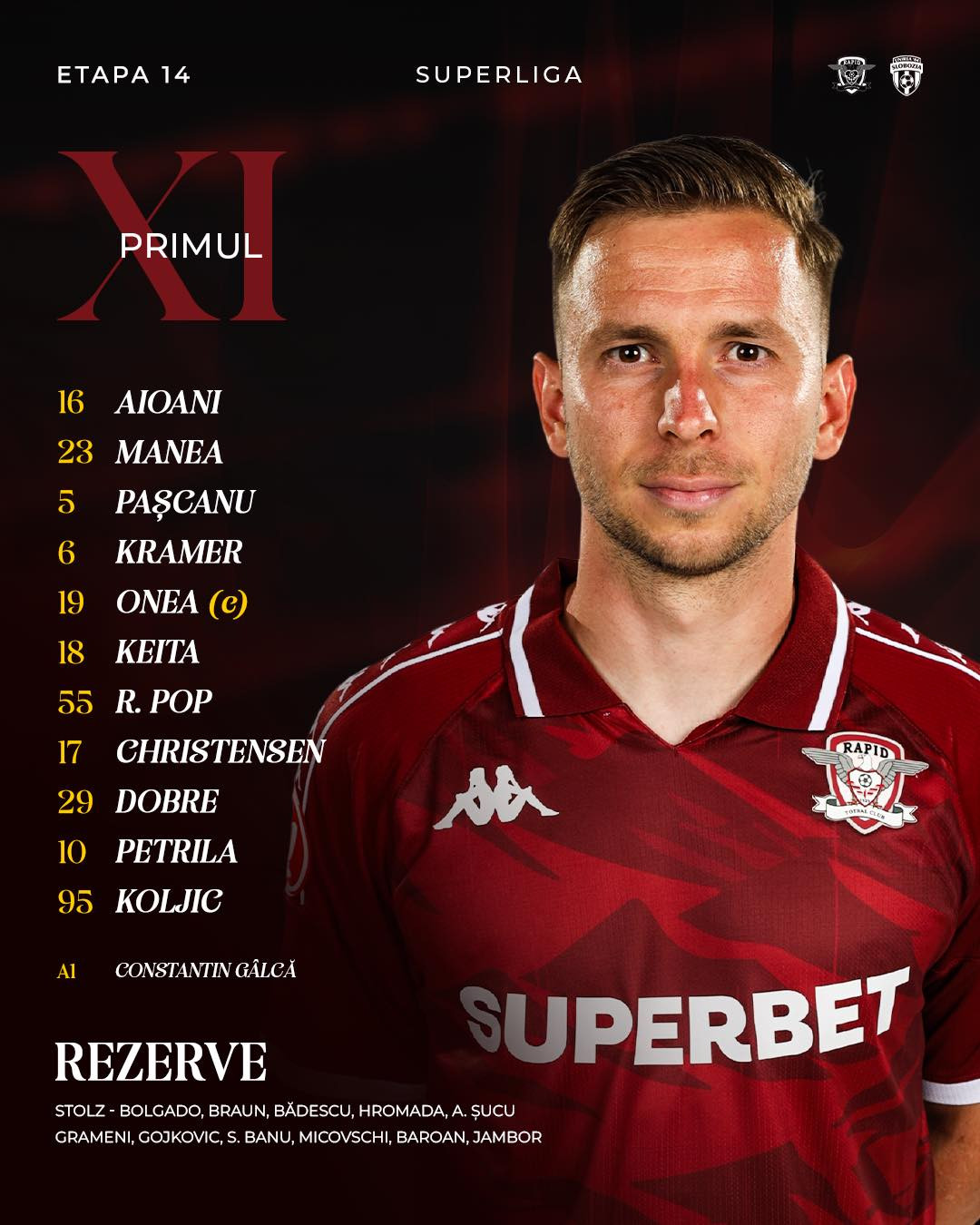 MIN. 45+2 GOOOOL Rapid! Înscrie pentru 3-0 și Cristian Manea, celălalt jucător vopsit din echipa Rapidului! MVP până acum este, fără îndoială, Claudiu Petrila.