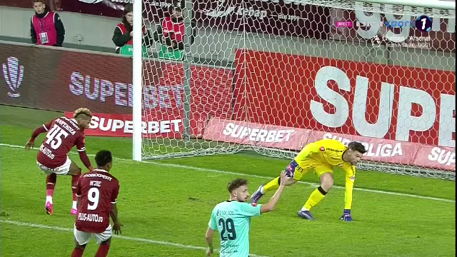 După mai multe ocazii de poartă, giuleștenii au ajus periculos la buturile apărate de Popa în minutul 16, atunci când Aaron Boupendza a ratat o șansă uriașă de a marca.