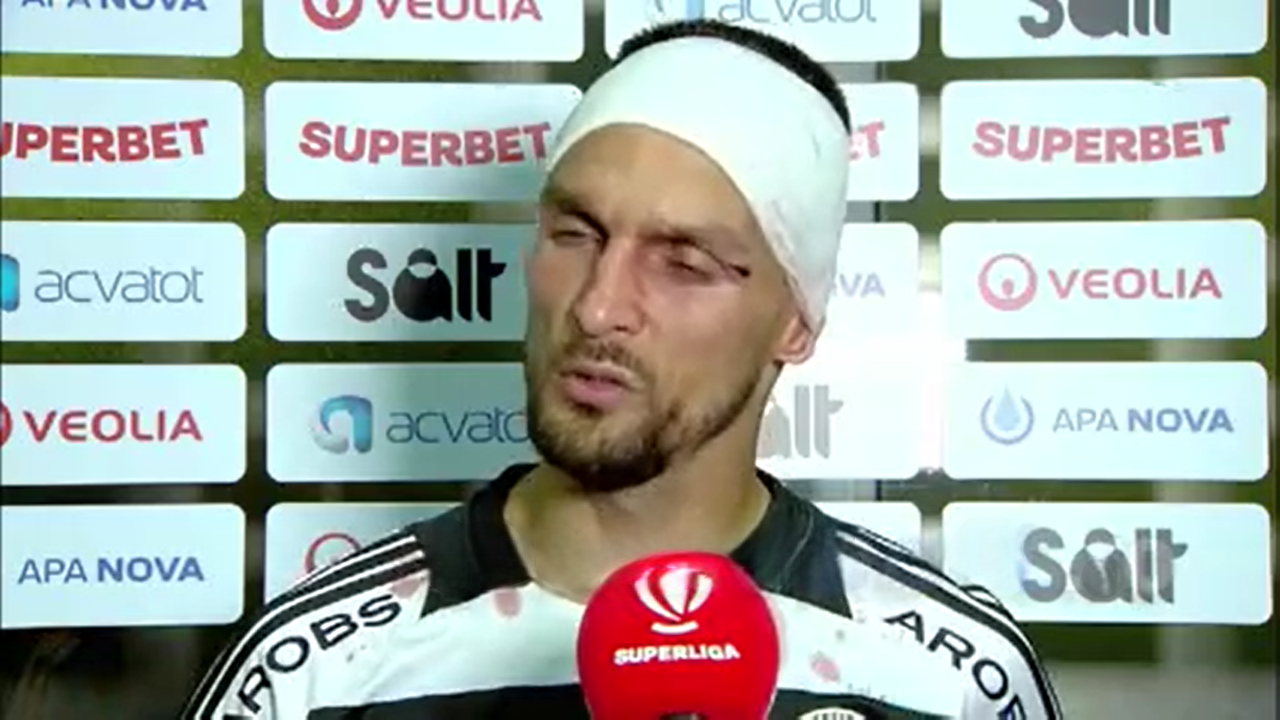 Cu capul bandajat, sânge pe tricou și câteva lovituri vizibile pe tricou, semn că a avut parte de câteva dueluri grele în flancul drept al apărării clujenilor, Mikanovic a vorbit despre duelul cu Farul, dar și despre primele sale impresii despre campionatul României.