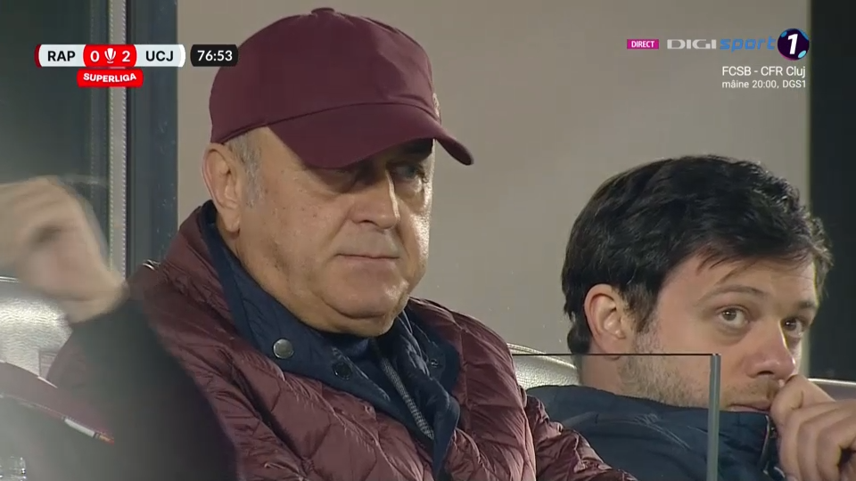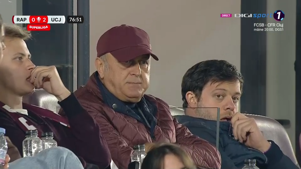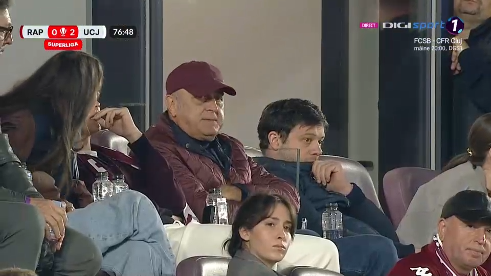 Imediat după reușita lui Macalou, camerele de filmat i-au surprins în tribune pe cei doi acționari ai giuleștenilor, deloc încântați de scor.