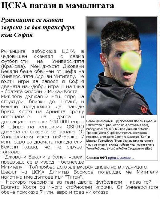 Scandalul dintre Ioan Becali si patronul Adrian Mititelu a ajuns pana la urechile bulgarilor de la 7days sport, care noteaza sec: „TSKA, blocata in mamaliga”.