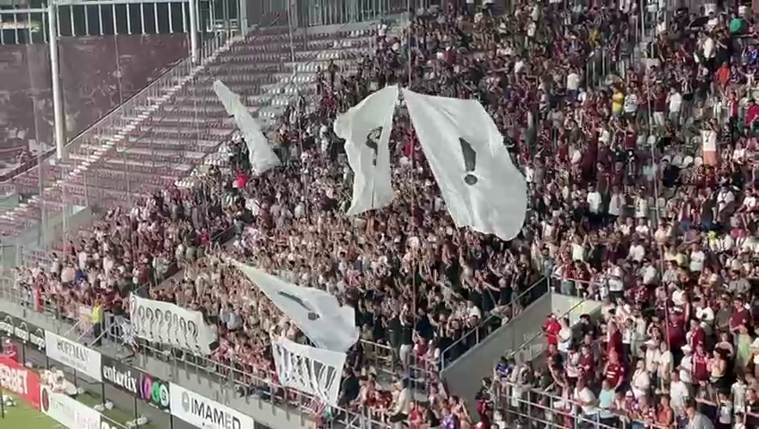 Aseară am vrut să tragem un semnal de alarmă prin afișarea unor semne de punctuație în locul recuzitei clasice care ne-a consacrat, vizavi de situația în care ne aflăm, în urma deciziei luate de unii angajați ai clubului Rapid București de a interzice accesul în Peluza Sud cu bannerul principal, dar și cu promisiunea că, pe viitor, măsurile vor deveni și mai severe implicit, să ni se interzică accesul și cu steaguri sau tobe.
