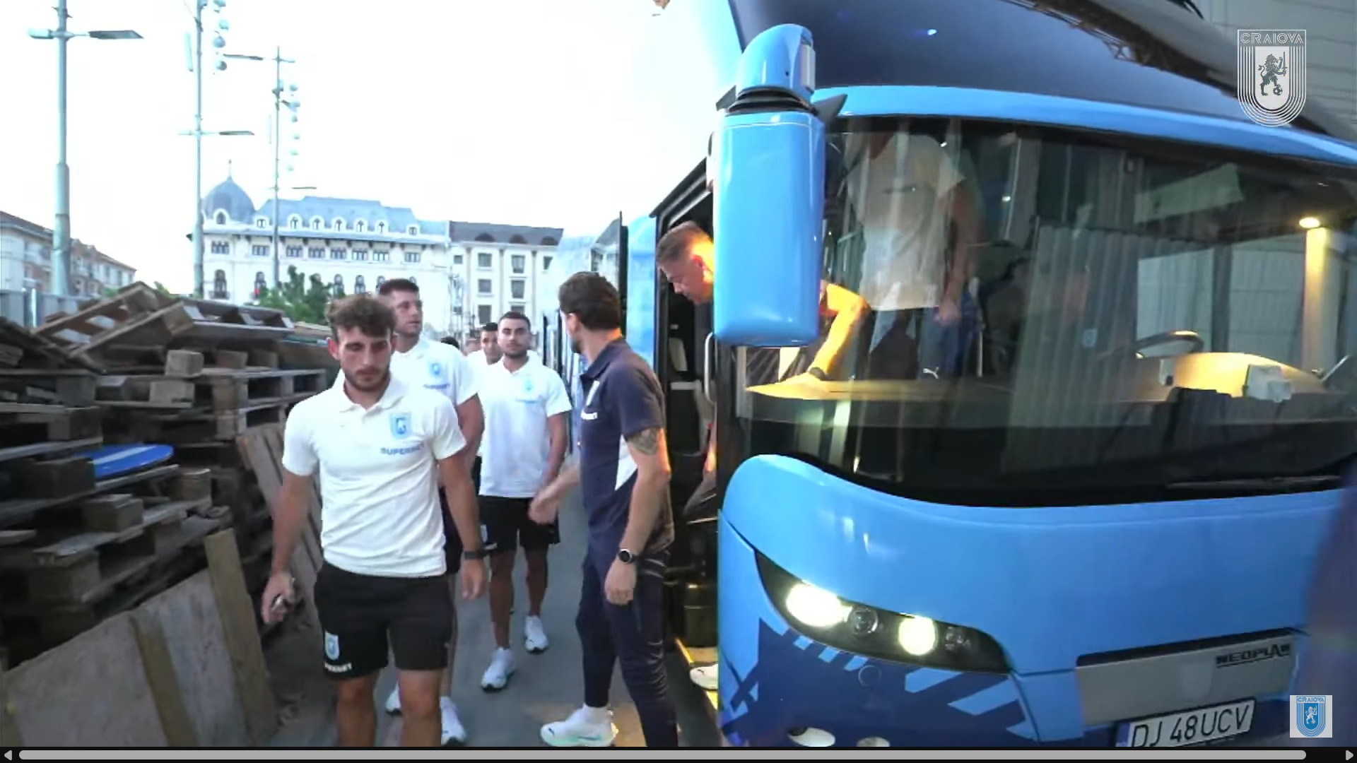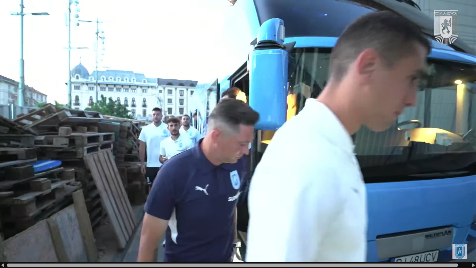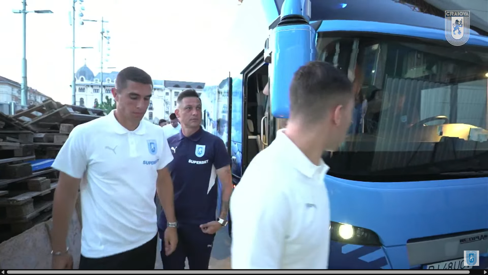 În cele din urmă, și-au făcut intrarea pe scenă și jucătorii Universității Craiova, însoțiți de staff-ul tehnic condus de Mirel Rădoi. A urmat apoi prezentarea echipamentului de deplasare, complet albastru, și cel special conceput pentru meciurile din Cupa României, în negru complet.