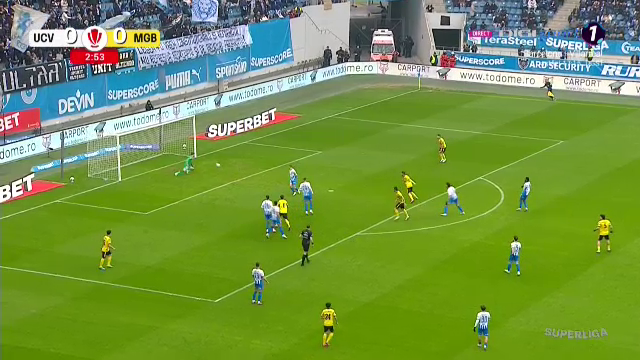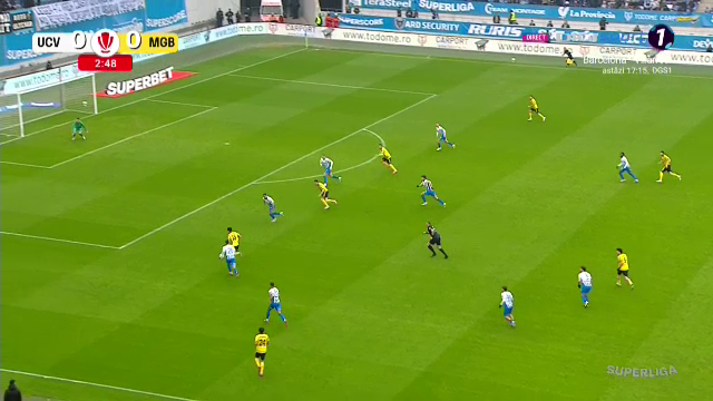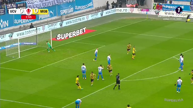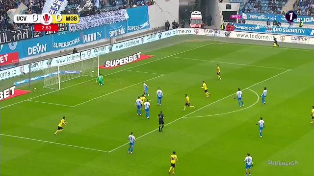 Universitatea Craiova - Metaloglobus București a început exact în stilul unui meci de tipul David versus Goliat. Metaloglobus, ultima clasată, a deschis scorul după doar trei minute în fața liderului.