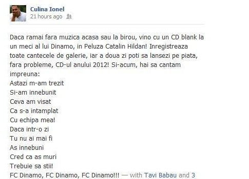 "Se zvoneste ca o sa ne dati meciul , un 2-1 scurt pentru Dinamo.E adevarat? 3-2 pt Dinamo ar fi mai palpitant" a fost mesajul postat pe pagina de Facebook a lui MM Stoica de un fan al lui Dinamo.