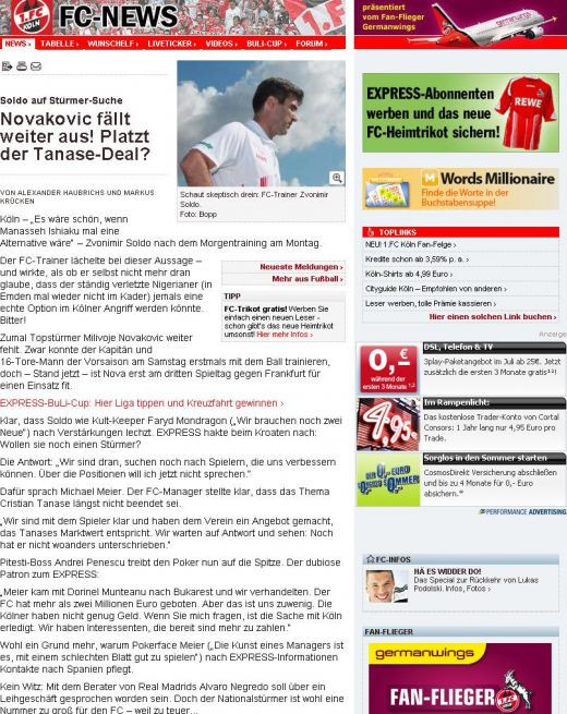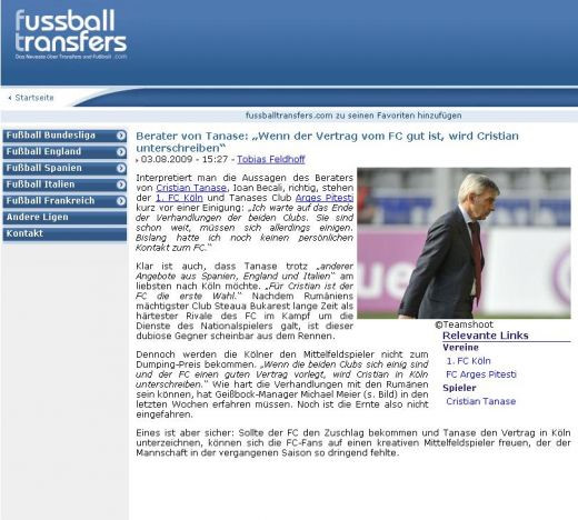 Astazi, ziarul german Express.de, cel mai implicat cotidian din Germania pe subiectul Tanase scrie ca nemtii de la Koln ar putea intensifica tratativele pentru pustiul lui FC Arges.