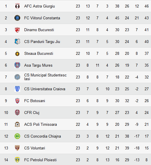 "Sunt fericit. Si nu ca avem 43 de puncte, nu ca suntem pe locul 2... sunt fericit ca avem cele mai multe goluri marcate in campionat, lucru care cred eu ca este surprinzator pentru toata lumea."