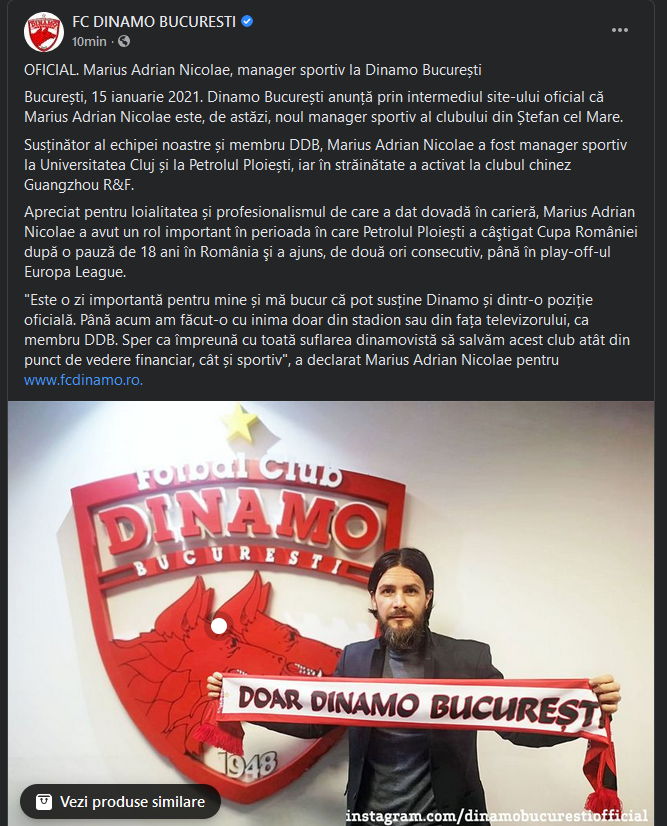 "Este o zi importanta pentru mine, ma bucur ca pot sustine Dinamo si dintr-o pozitie oficiala. Pana acum, am facut-o cu inima doar din stadion sau din fata televizorului, ca membru DDB. Sper ca impreuna sa salvam acest club atat din punct de vedere financiar, cat si sportiv", a spus Nicolae pentru site-ul lui Dinamo.