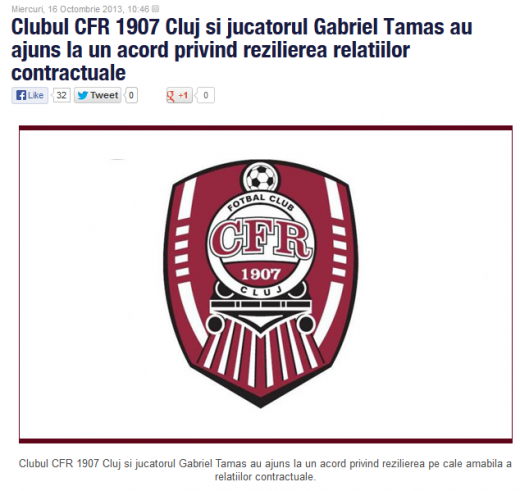 Gabi Tamas a rezistat doar o saptamana la Cfr Cluj! Iuliu Muresan a decis azi sa ii rezilieze contractul, dupa ce a aflat ca acesta a stat mai mult prin baruri decat pe terenul de antrenament in cele cateva zile de cand a ajuns la Cluj!