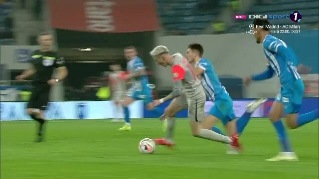 Ștefan Vlădoiu, eliminat în minutul 41 al meciului Universitatea Craiova - FCSB