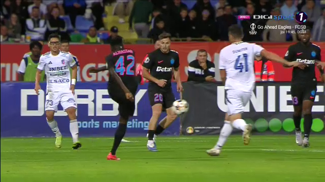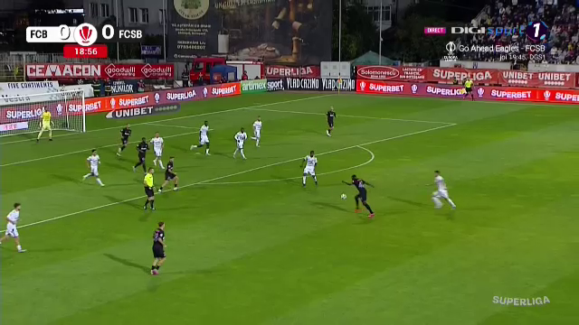 În minutul 19, FCSB a bifat o ocazie importantă de a deschide scorul cu șutul lui Baba Alhassan.