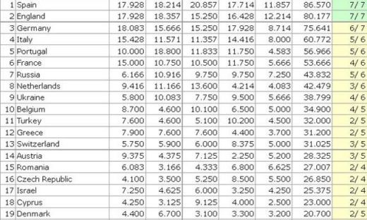 Cu 27.007 puncte stranse, Romania se afla in acest moment pe locul 15 in Europa. Cehia ne mai poate depasi insa, daca Slovan Liberec se va califica in primavara europeana. In acest moment, Romania a urcat doua locuri fata de inceputul sezonului. Daca situatia asa, castigam un loc in plus in preliminariile Champions League. Daca Romania pica pe 16, castigatoarea Cupei se califica direct in play-off-ul Europa League, iar campioana urca direct in turul III preliminar al Ligii.
