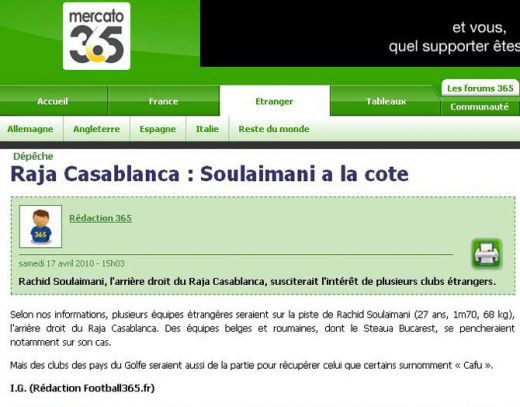 Site-ul mercato365.com sustine cu Steaua este interesata de fundasul marocan Rachid Soulaimani!