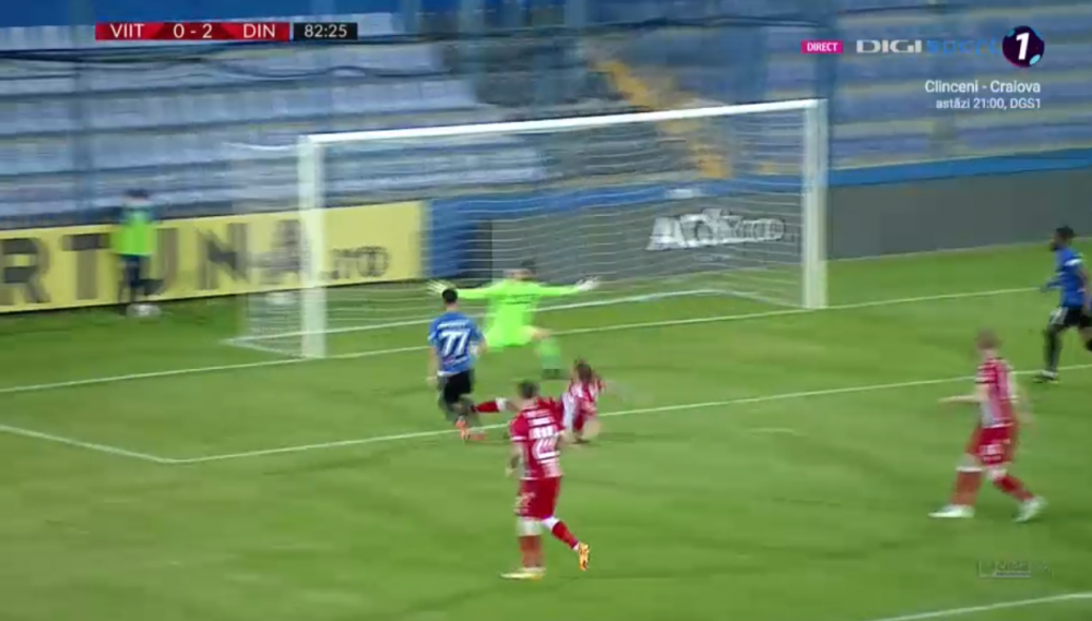 min 73: GOOOL DINAMO! Albentosa profita de o eroare defensiva uriasa in apararea Viitorului la un corner si face 2-0 pentru Dinamo!