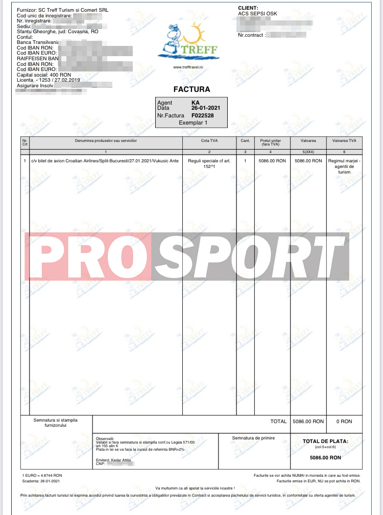 La scurt timp dupa ce a declarat ca spusele lui Dioszegi sunt doar niste nascociri, ProSport a publicat biletul de avion pe care Sepsi l-a achitat pentru aducerea lui Ante Vukusic in Romania. Costul biletul s-a ridicat la 5.086 de lei.