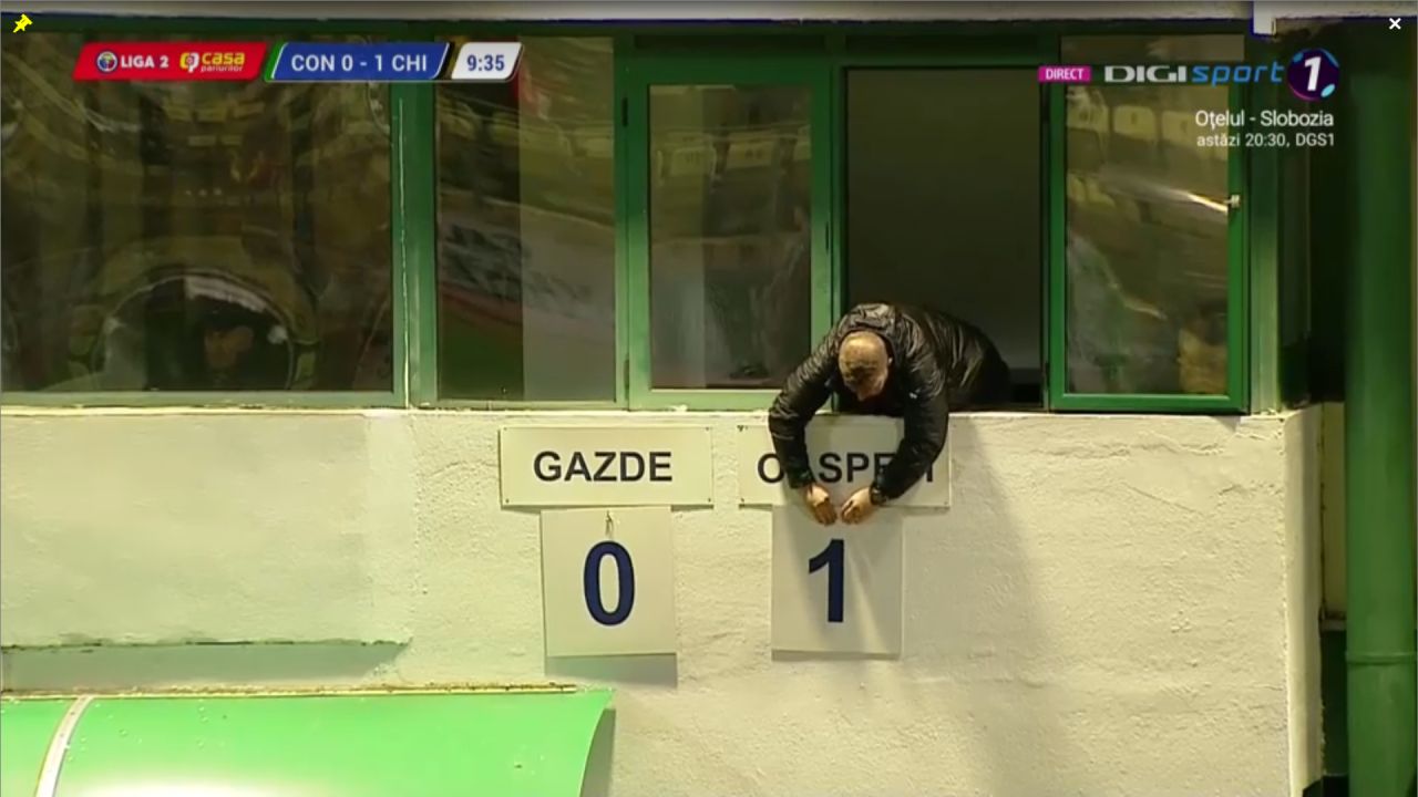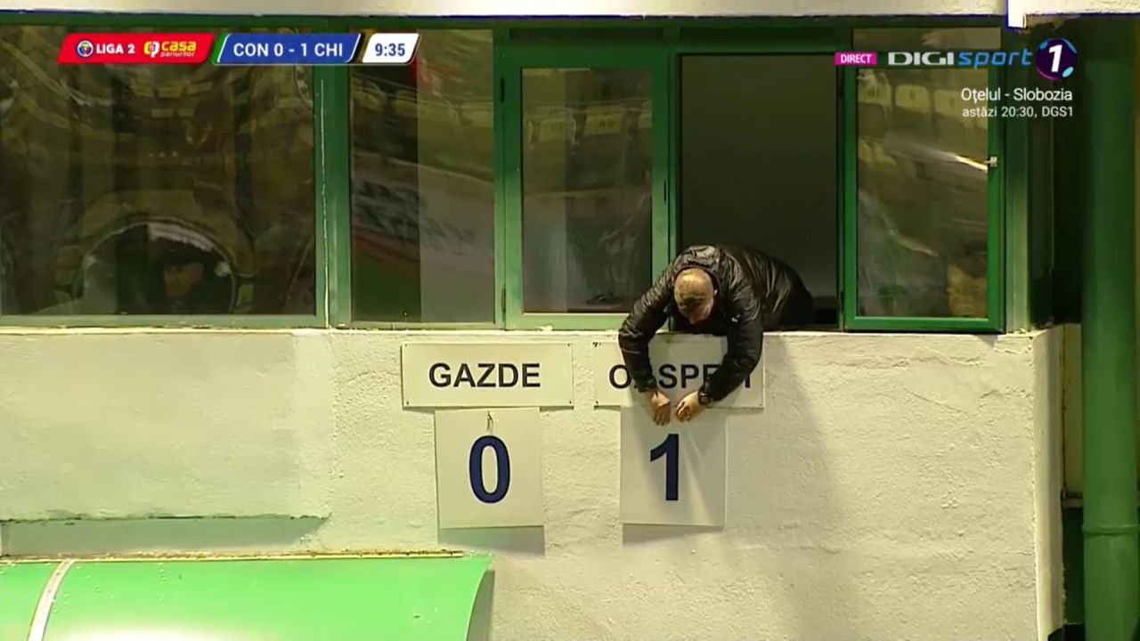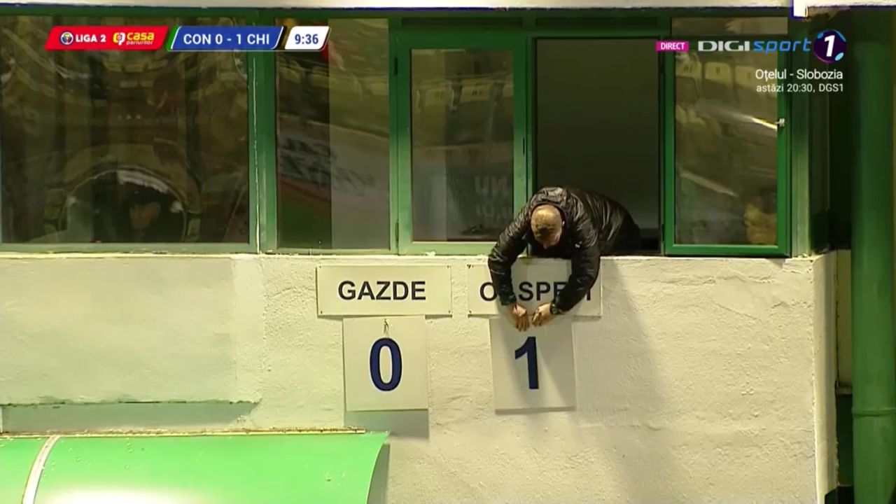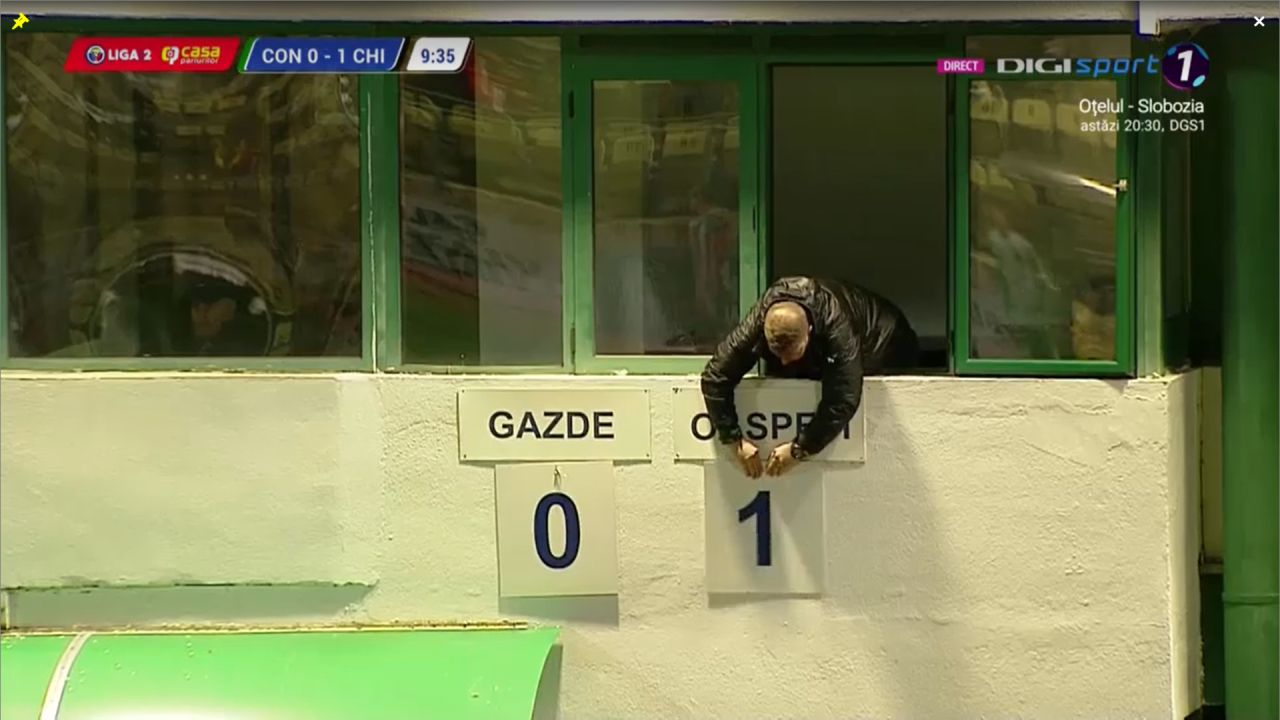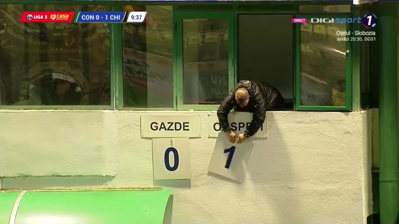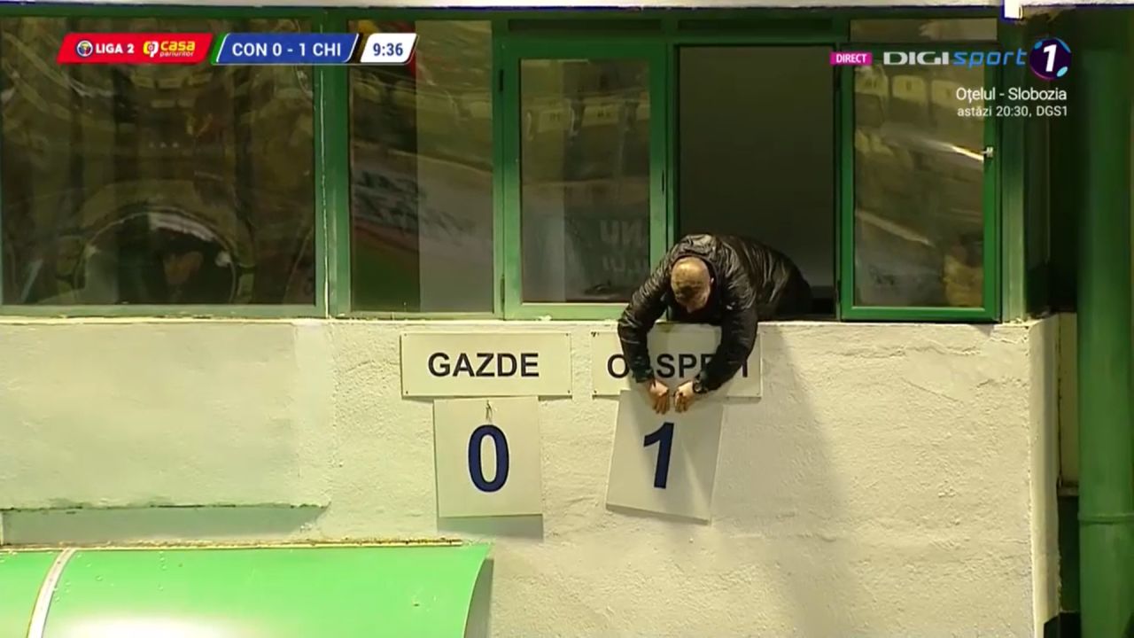 Evident, după ce Daniel Celea a marcat, scorul a trebuit modificat, astfel că o persoană, probabil din staff-ul celor de la Concordia Chiajna, a fost surprinsă de camerele de filmat cum a deschis fereastra și s-a aplecat pentru a așeza o pancartă cu ”1” în dreptul celor de la Chindia.