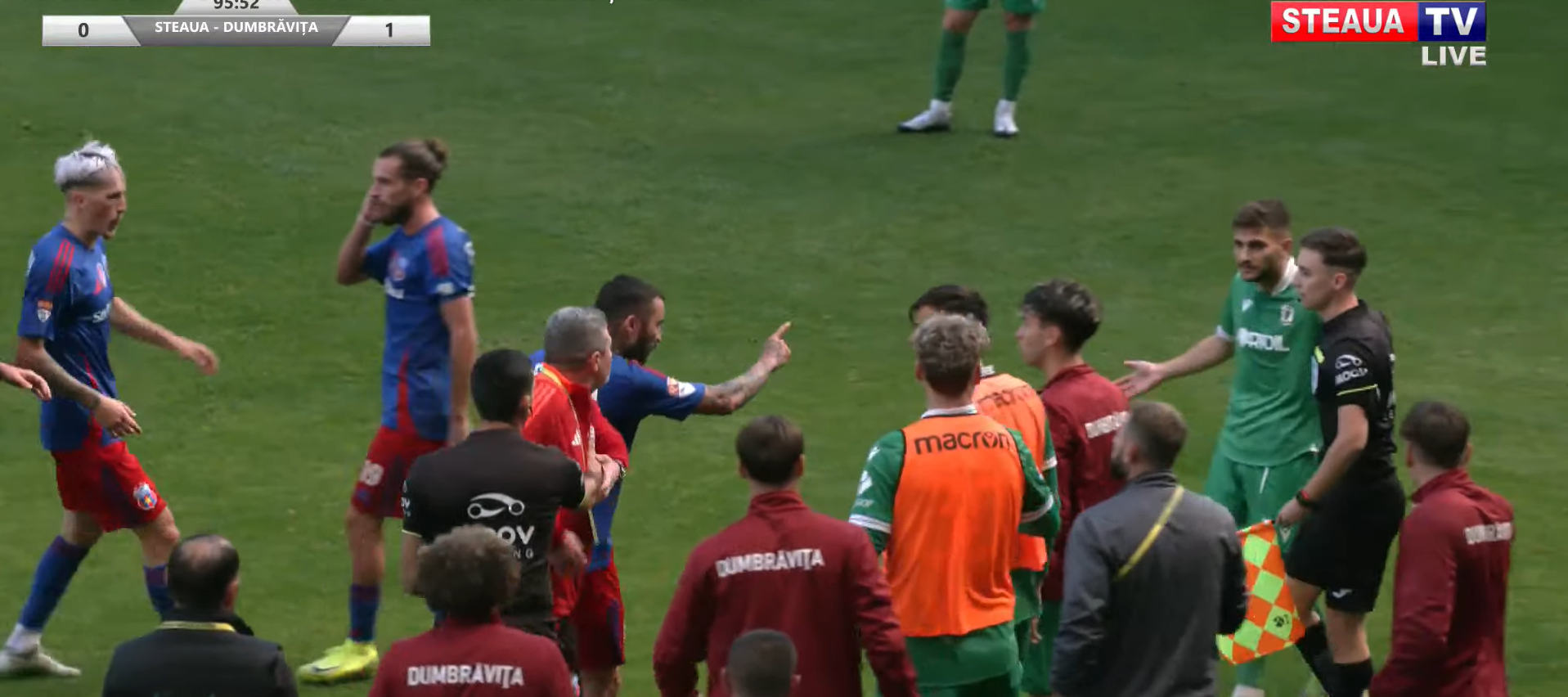 La câteva secunde după ratarea lui Chipirliu a izbucnit un conflict între jucătorii celor două echipe cu numeroase înjurături și îmbrânceli. Centralul Robert Mormeci le-a acordat doar cartonașe galben lui Adrian Ilie (Steaua), Nicolae Sofran și Gheorghe Gondiu (Dumbrăvița).