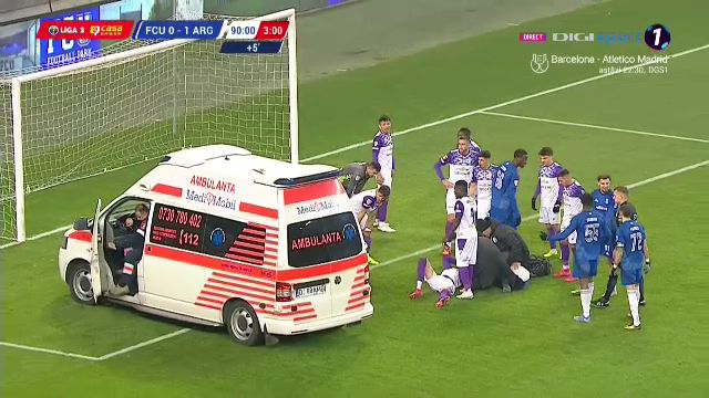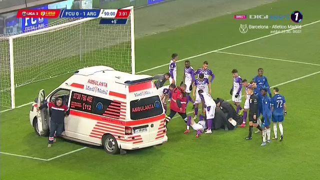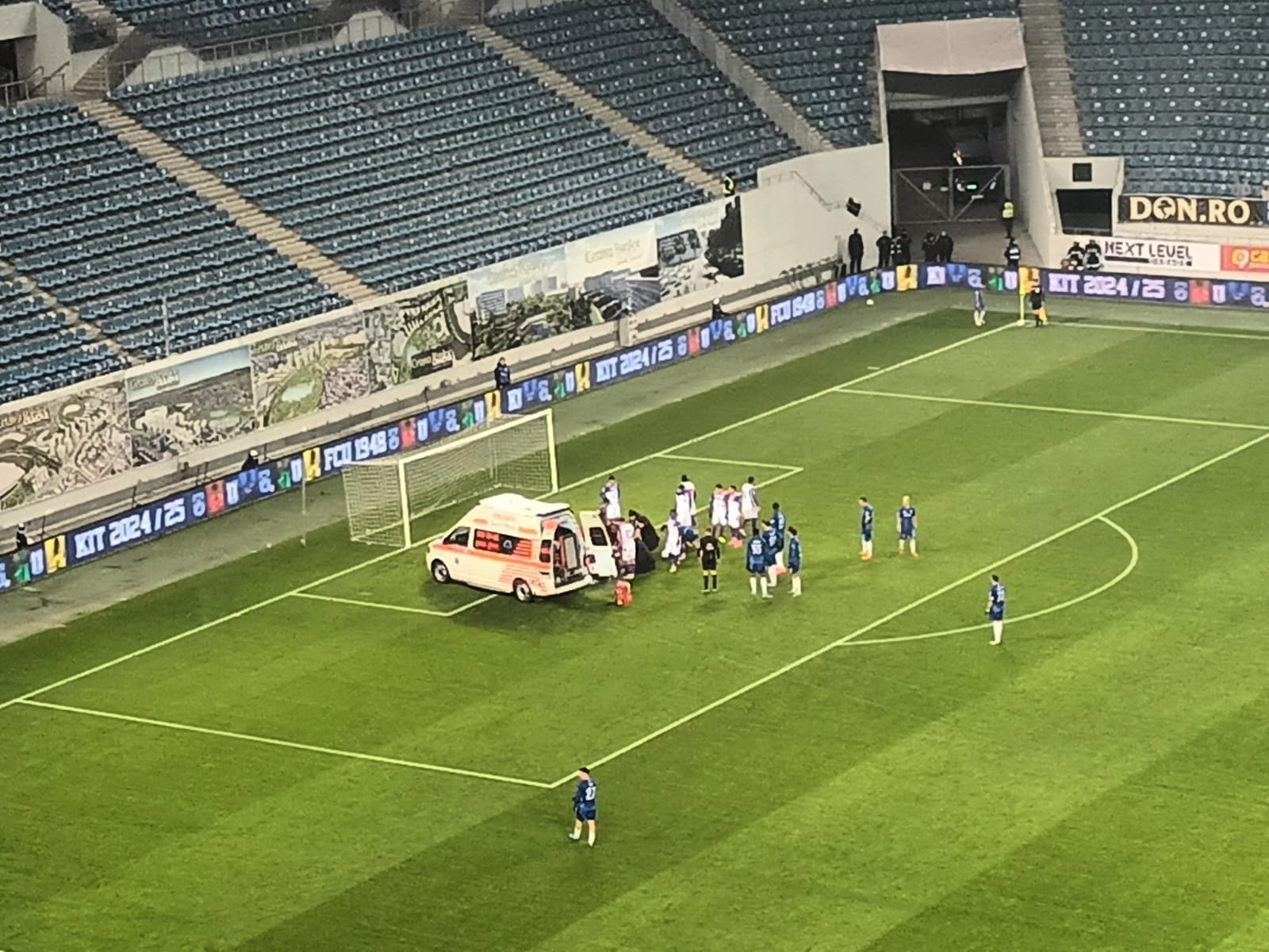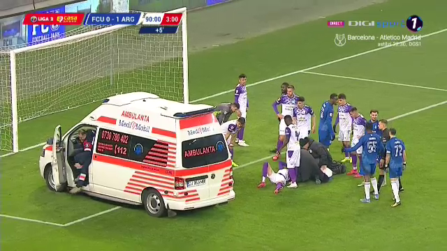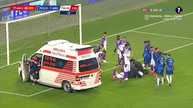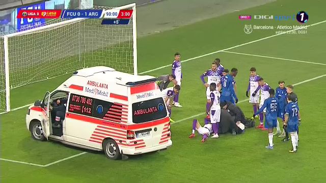 Finalul partidei a oferit momente de groază. În minutul 90+3, la scorul de 1-0 pentru FC Argeș, Craiova a declanșat un contraatac periculos. Francezul Idris Bounaas a șutat puternic spre poartă, iar Mario Tudose a fost lovit direct în figură, căzând inconștient pe gazon, ca după un croșeu de box.