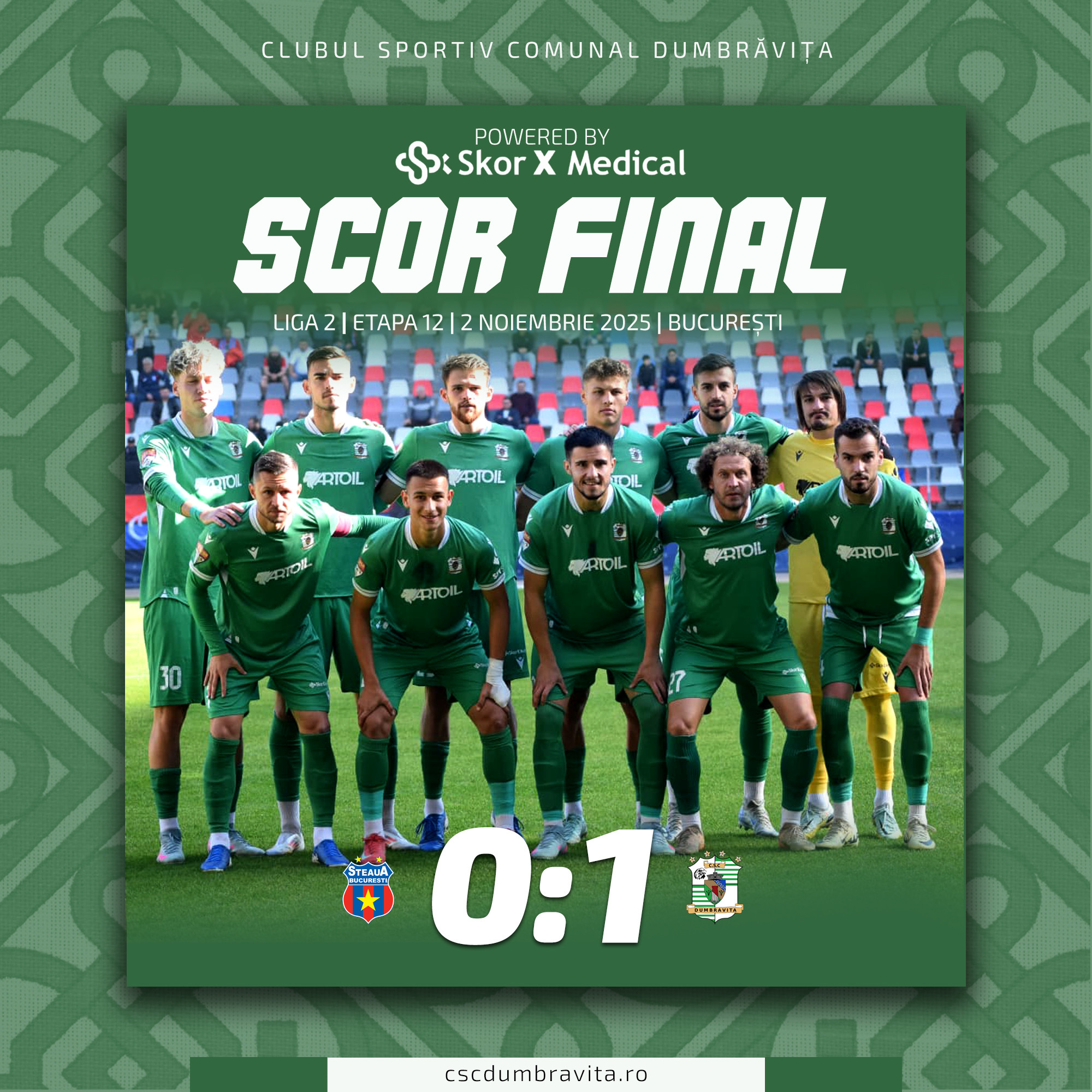 Steaua a fost învinsă de CSC Dumbrăviţa cu scorul de 1-0, duminică, în Ghencea, în etapa a 12-a din Liga 2. LIVE TEXT AICI