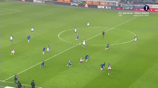 Unicul gol al meciului a fost marcat în prelungirile primei reprize. Stijn Meijer, jucătorul lui FC U Craiova, a comis un henț cum rar se vede în propriul careu, cu ambele mâini, la un corner al piteștenilor, iar Mihai Roman a transformat lovitura de la 11 metri.