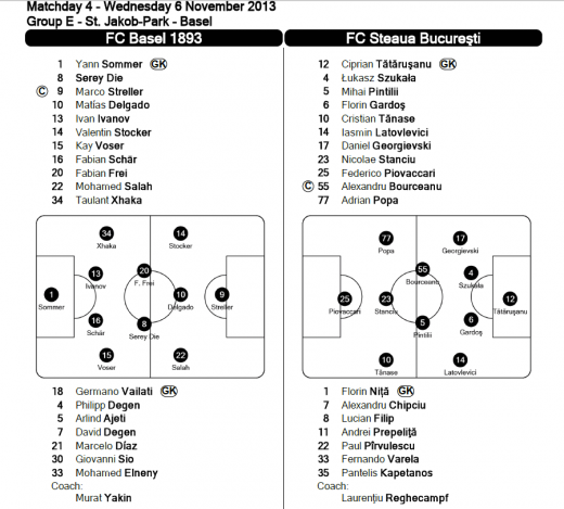 Steaua a jucat in ultimele meciuri in sistemul 3-4-3, insa meciul din aceasta seara cu Basel va reveni la sistemul 4-2-3-1.