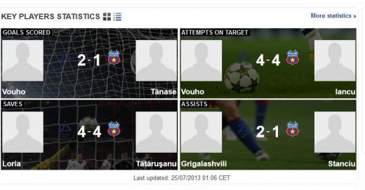 Din partea Stelei, la 'key players', adica jucatori importanti, e trecut Tanase, care a marcat o singura data pentru Steaua in aceste preliminarii.
